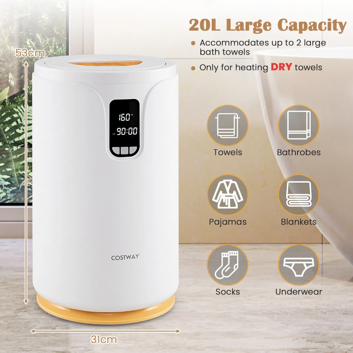 【Royale capaciteit van 20 liter】 :Met een grote capaciteit van 20 liter biedt deze draagbare verwarmde handdoekenemmer plaats aan 2 extra grote handdoeken van 114 x 178 cm. Deze handdoekverwarmer is ideaal voor gezinsgebruik en kan verschillende stoffen verwarmen, zoals pyjama’s, badjassen en dekens. Let op: alleen voor het verwarmen van DROGE handdoeken.