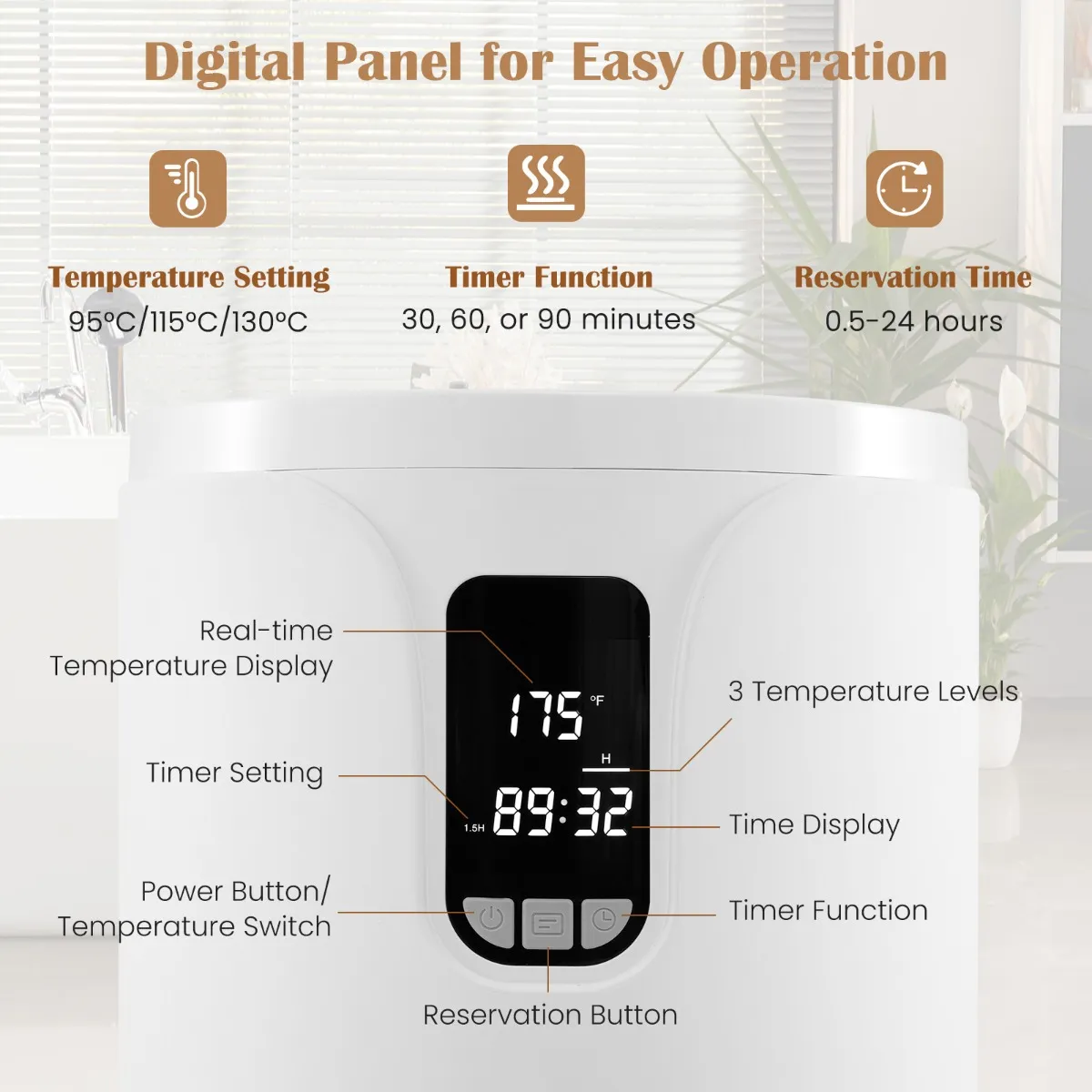 【Gebruiksvriendelijk bedieningspaneel】:Een gebruiksvriendelijk LCD-scherm zorgt voor een probleemloze bediening. Pas verwarmingssessies aan met een timer van 0,5 tot 24 uur en opties voor verwarmingstijden van 30/60/90 minuten. Kies uit 3 temperatuurniveaus om aan je voorkeuren te voldoen.