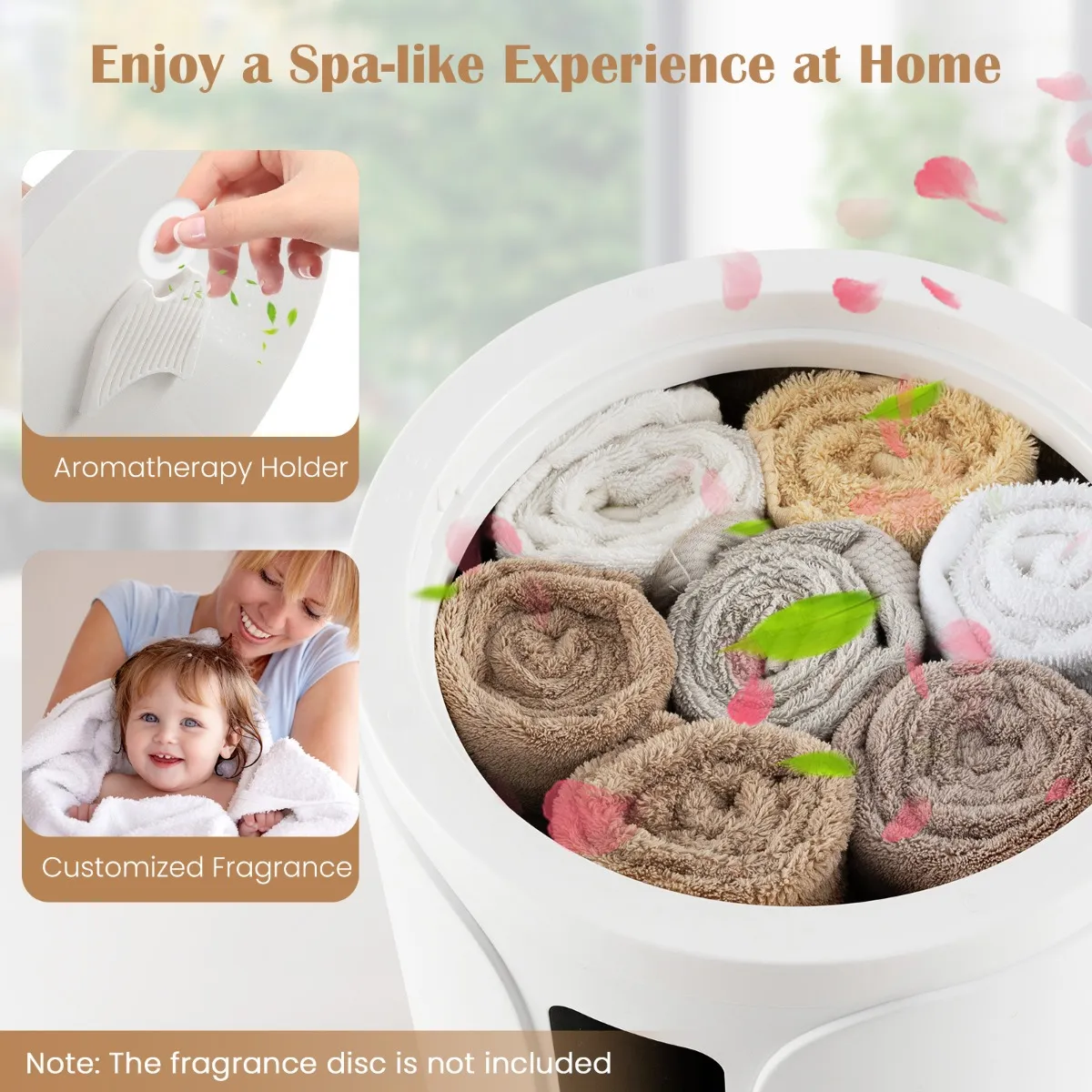Deze handdoekwarmer bereikt na snelle opwarming al na 5 minuten een optimale temperatuur van 130°C. De 20L-emmer voor warme handdoeken is geschikt voor grote handdoeken, badjassen, sokken of ondergoed. Temperatuurinstellingen en slimme timer worden afgestemd op uw voorkeuren. Voor extra veiligheid is er een kinderslot aanwezig om onbedoeld gebruik te voorkomen. Uitgerust met een aromatherapiehouder op het deksel, waar u uw favoriete geurschijfje (niet inbegrepen) in kunt plaatsen voor een gepersonaliseerde geur.