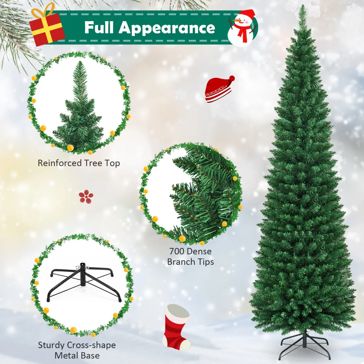 【Dun potloodontwerp】Deze kerstboom is ontworpen in een dunne potloodvorm die uniek en ruimtebesparend is. Dankzij zijn smalle lichaam is de kunstboom perfect om in hoeken, kleine kamers of plaatsen met weinig vloeroppervlak te plaatsen, waardoor je leven meer spanning en originaliteit krijgt.