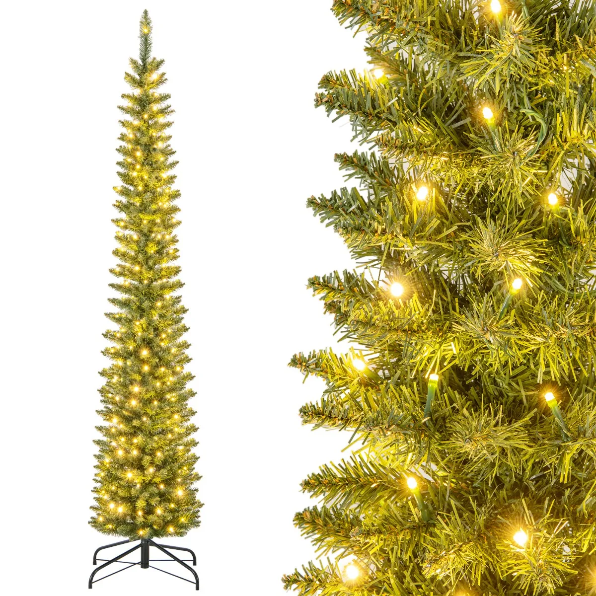 【Slanke potloodvorm】: De slanke potloodvormige kerstboom past in elke ruimte en is veelzijdig voor allerlei toepassingen. Met zijn elegante, slanke profiel breng je de feestelijke sfeer in je huis, kantoor, winkel of school.
