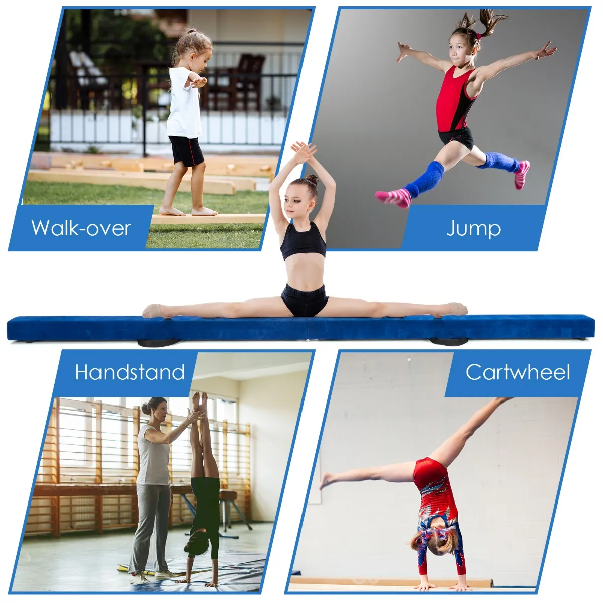 Onze opvouwbare gymnastische evenwichtsbalk kan worden gebruikt voor beginners training of voor professionals om hun techniek te verbeteren! Het is van grond-niveau en heeft een schuim-gepolsterde bovenkant om uw kind te helpen vertrouwen opbouwen. Ondertussen wordt de evenwichtsbalk ondersteund door een massieve houten plank, zodat het niet te zacht zal zijn om een enkelblessure te veroorzaken. Het oppervlak van de evenwichtsbalk is omwikkeld met suède achtige stof, die antislip en scheurbestendig is, geschikt voor langdurig gebruik. Om te voorkomen dat de evenwichtsbalk wegglijdt tijdens het trainen, is de onderkant voorzien van antislip pads en anti-slip voetjes. Het zal zeker een perfecte cadeau voor uw kleintje dat zijn of haar algemene fitness bevordert.