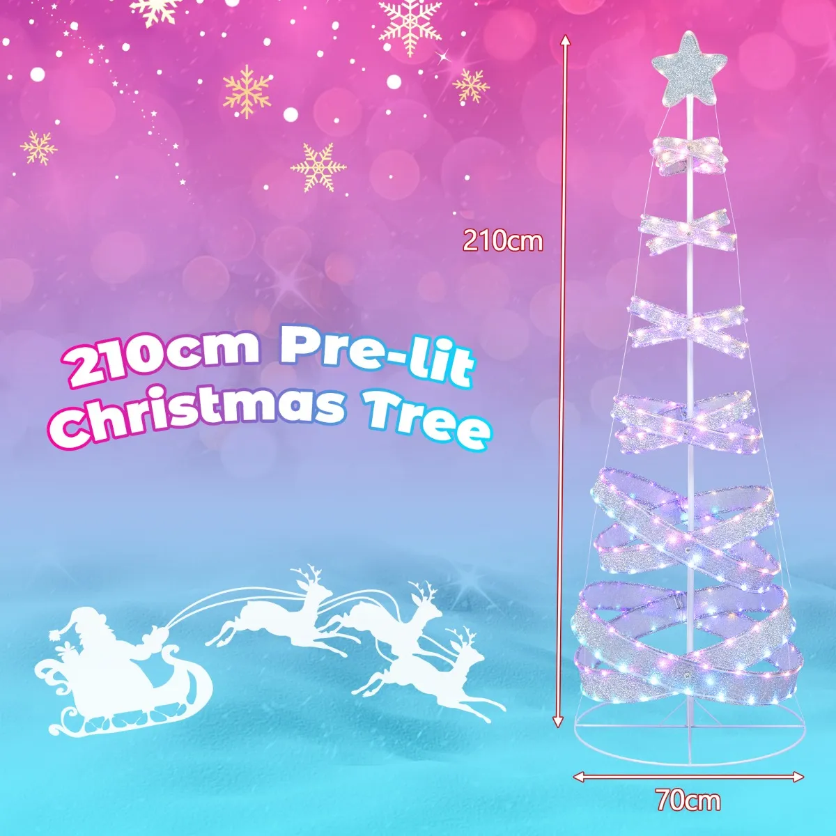 【Unieke spiraalkerstboom】: Begroet uw familie en vrienden deze feestdagen vrolijk en feestelijk met de kerstboom. De voorverlichte kerstversiering van 210 cm heeft een uniek spiraalvormig ontwerp en simuleert het uiterlijk van een kerstboom, wat een levendige en mooie sfeer toevoegt aan de kerstviering.