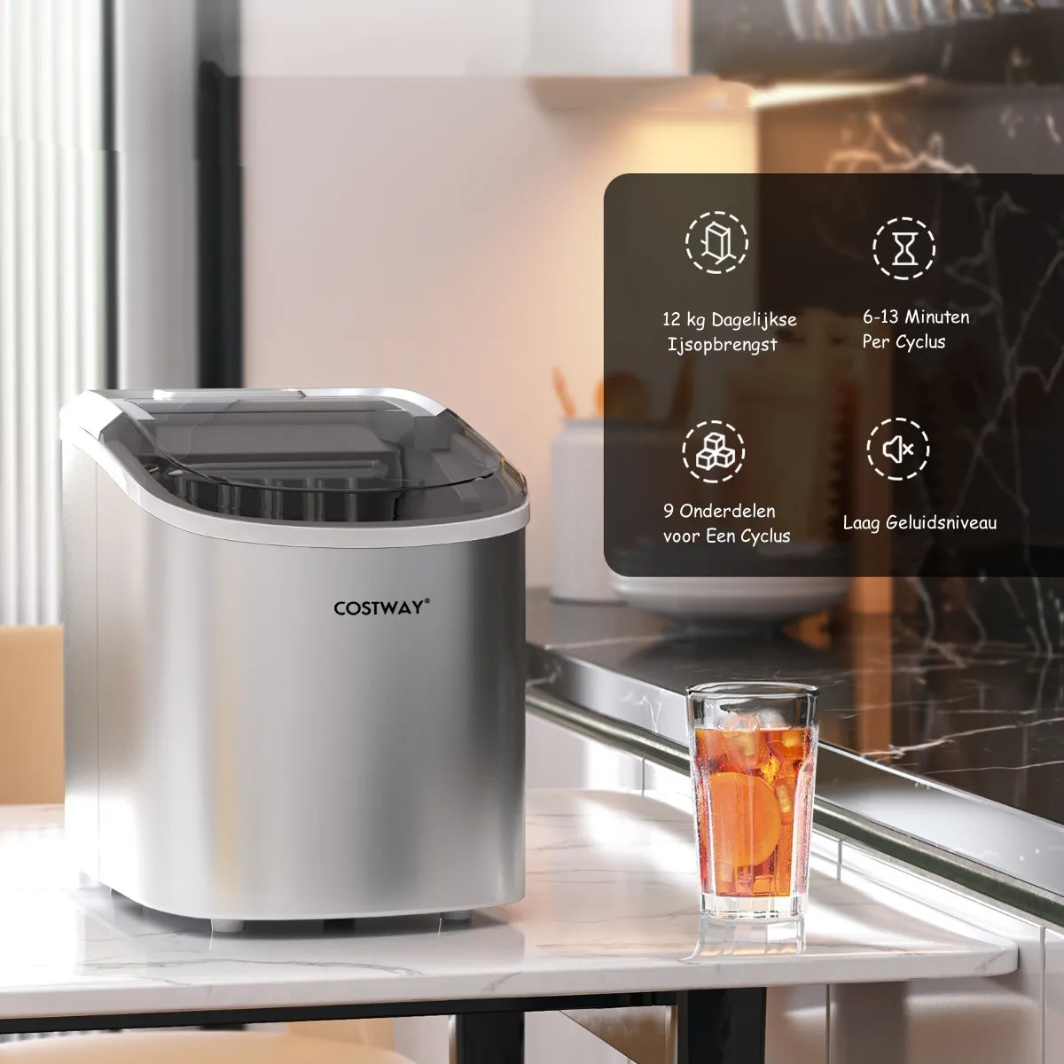 Heeft een watertank van 2,2 L, produceert 9 ijsblokjes per 6 minuten, 12 kg per dag