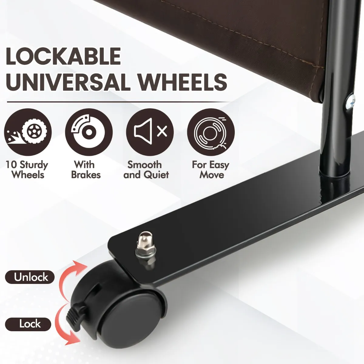 Verstelbare universele wielen: De onderkant van deze inkijkbescherming beschikt over 10 universele wielen, waardoor ons scherm zeer eenvoudig van ruimte naar ruimte kan worden verplaatst. Het is ook eenvoudig te bedienen als je het scherm moet opvouwen. Bovendien kunnen de universele wielen worden vergrendeld om wegglijden van de ruimteverdeler te voorkomen, nadat hij in de gewenste positie is gebracht.