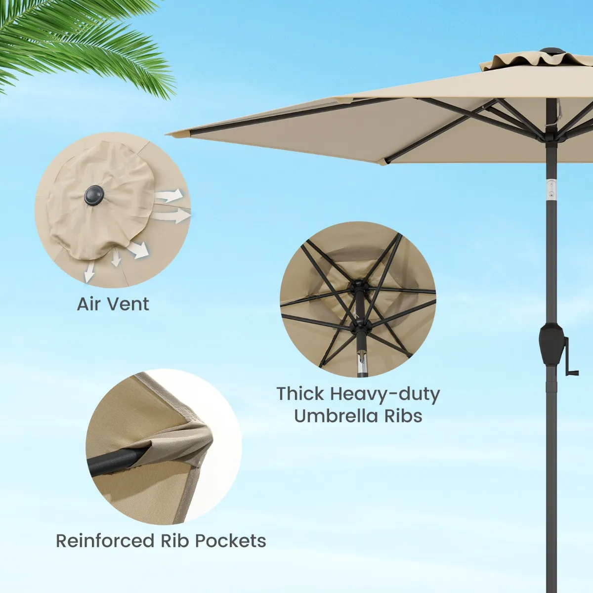 【Beschermende geventileerde stof】: Deze stevige terrasparaplu is gemaakt van kleurvast polyester en biedt langdurige bescherming tegen de zon en lichte regen. Bovendien zorgt de geventileerde stof voor een goede luchtcirculatie, zodat je koel en comfortabel blijft.