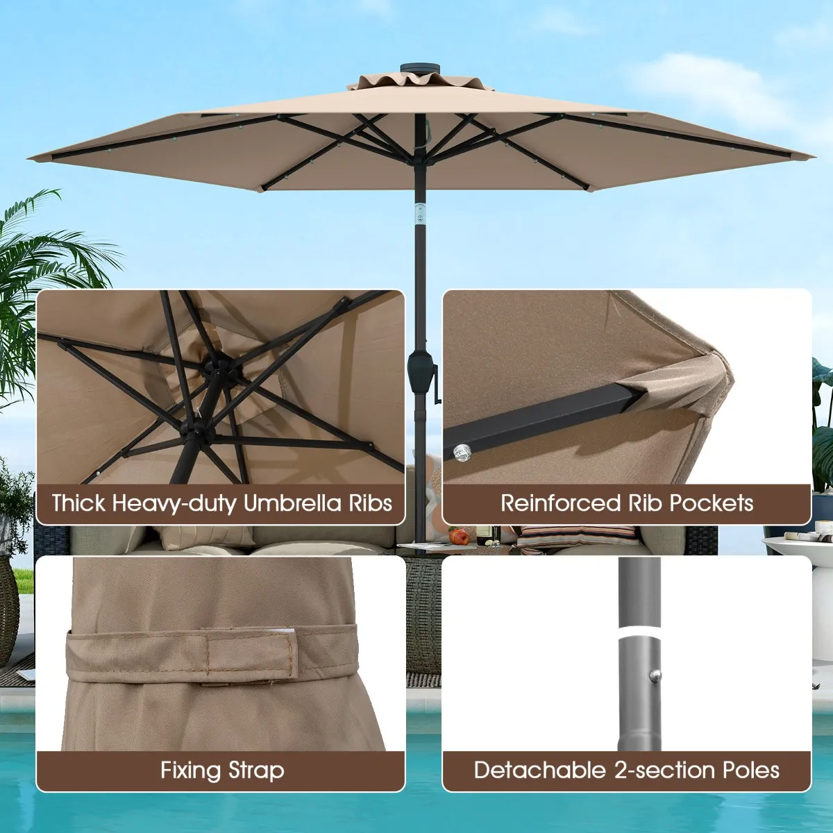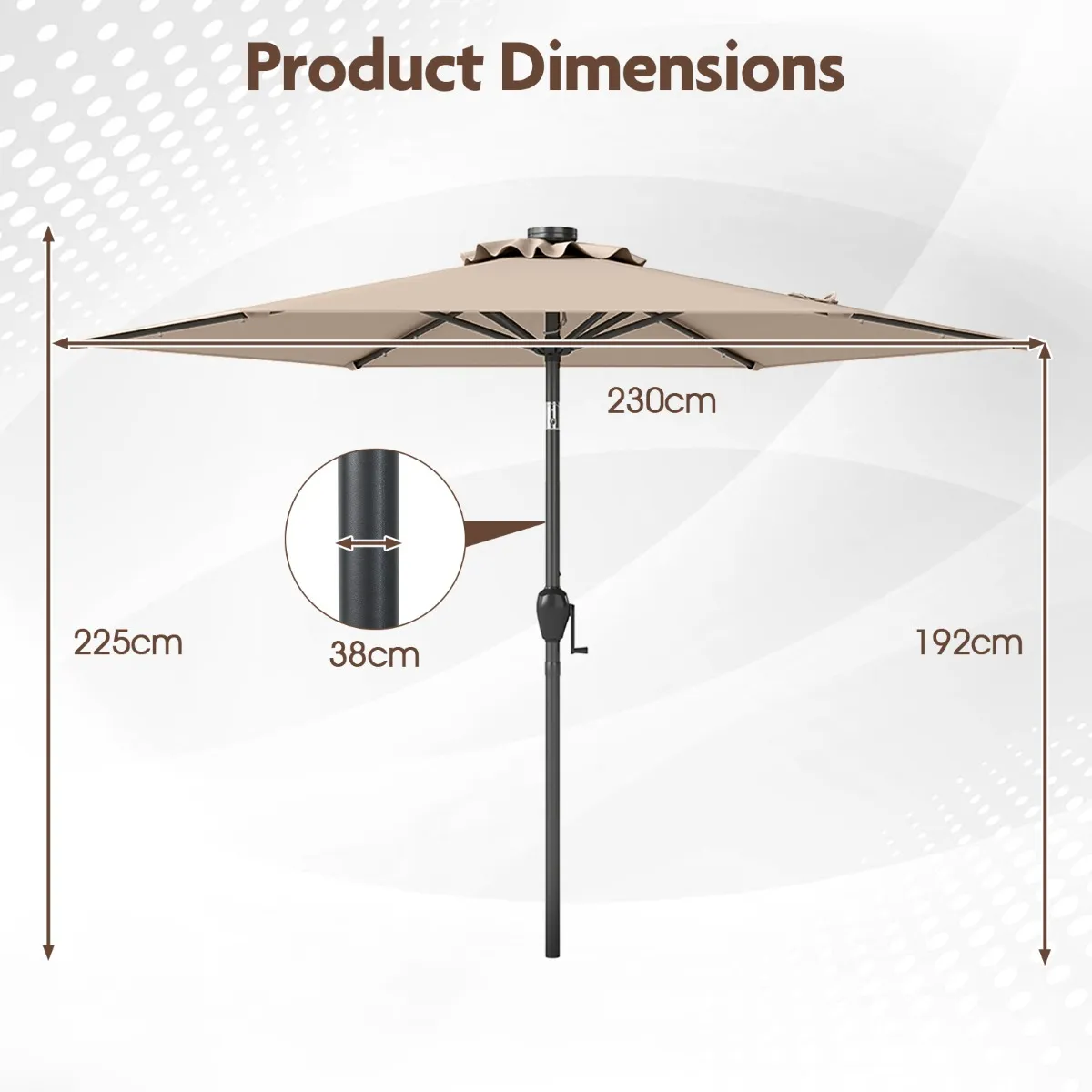 【Energiezuinig verlichtingssysteem】: Met 18 LED’s rond de baleinen verlicht deze parasol je avonden met een warme gloed. Het zonnepaneel geeft tot 6 uur verlichting na een volledige lading. Schakel de verlichting overdag uit voor langere verlichting.