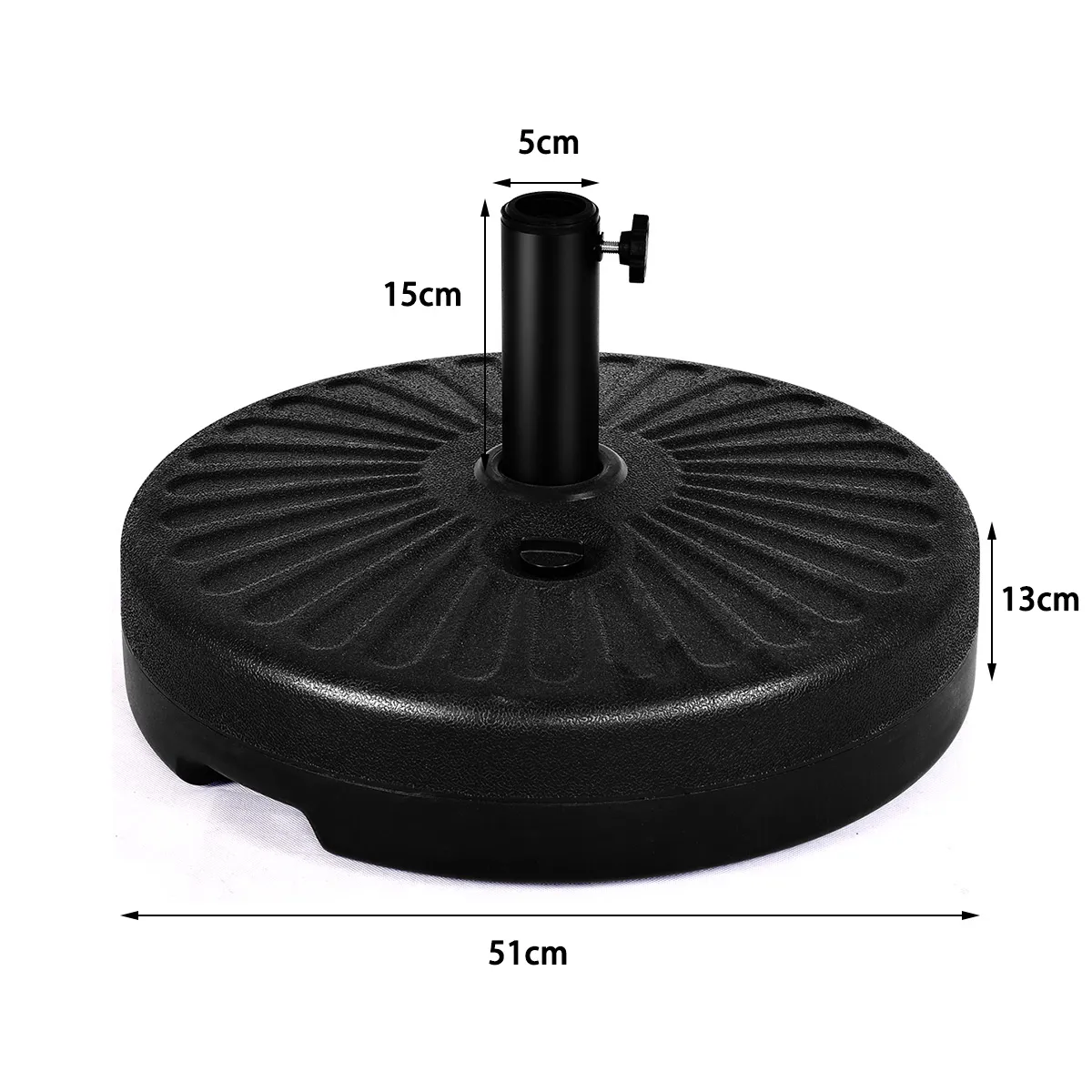 Onze parasolvoet is gemaakt van hoge kwaliteit HDPE met een goede weerbestendigheid. De parasolvoet is geschikt voor parasolpalen met een diameter van 38 mm en 48 mm. U kunt hem gebruiken in de tuin, achtertuin of op het strand. Dankzij het lichte gewicht kunt u hem gemakkelijk dragen.