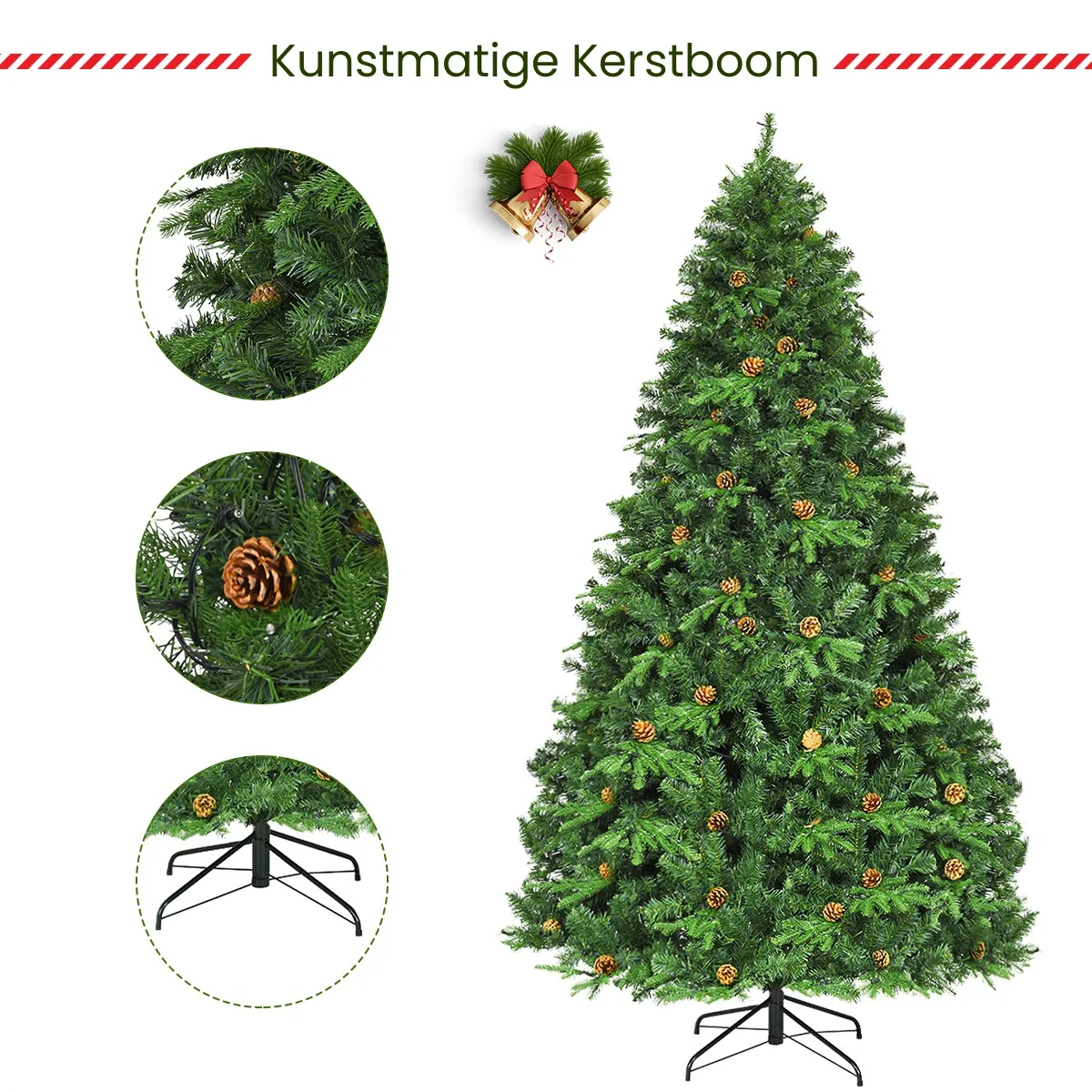 - Afmetingen: 240cm met 1335 takken, 600 stuks LED, 81 dennenappels, diameter van de onderkant 60cm
