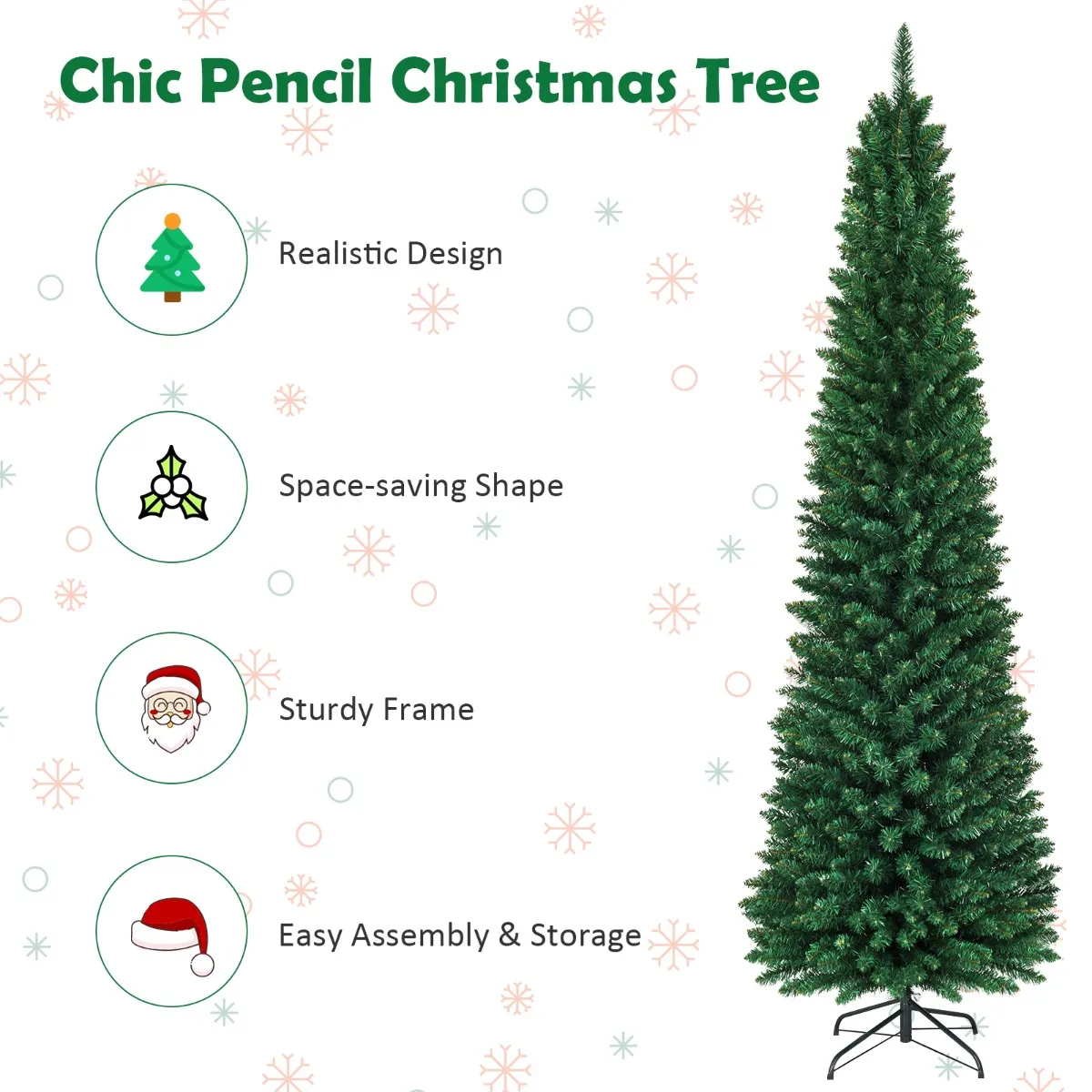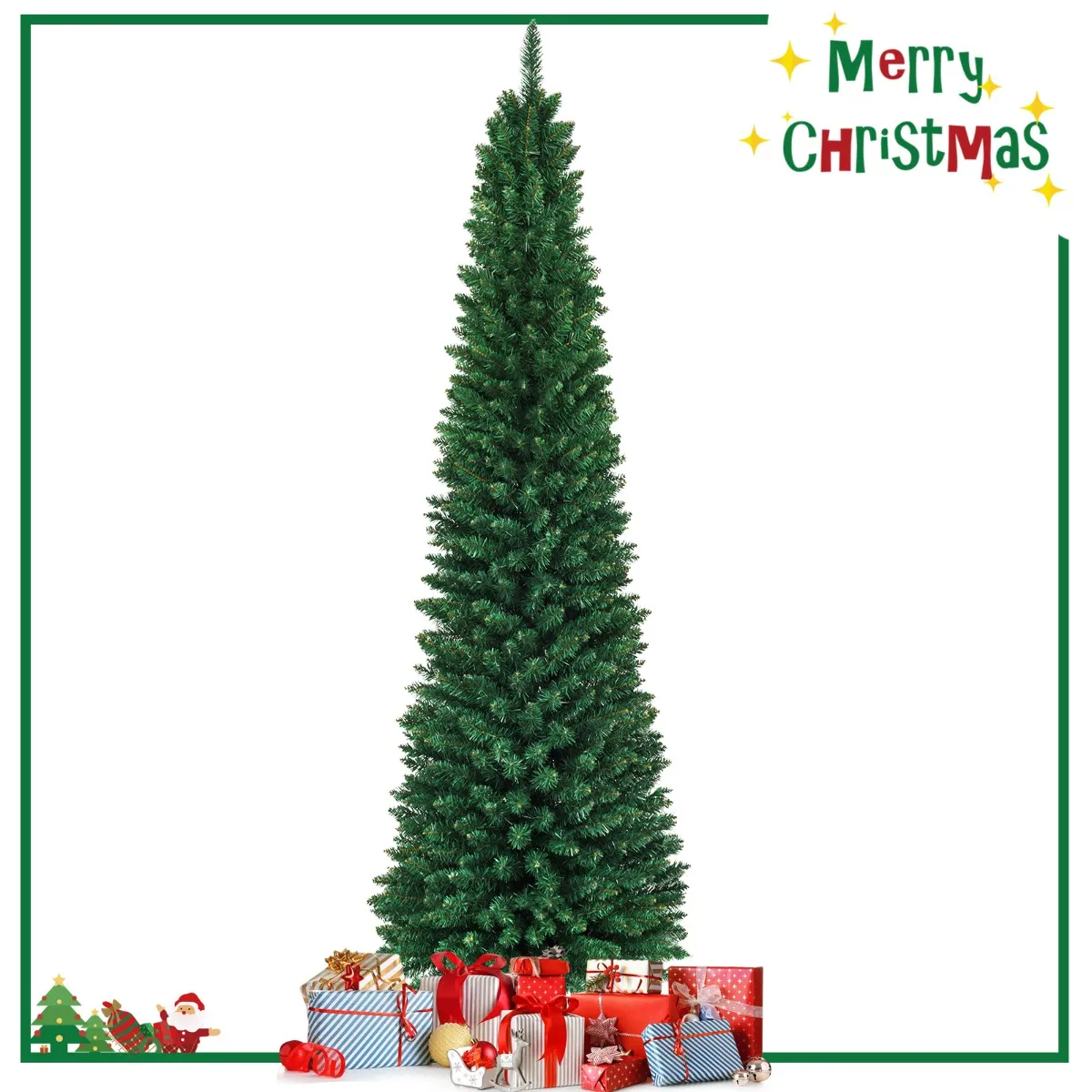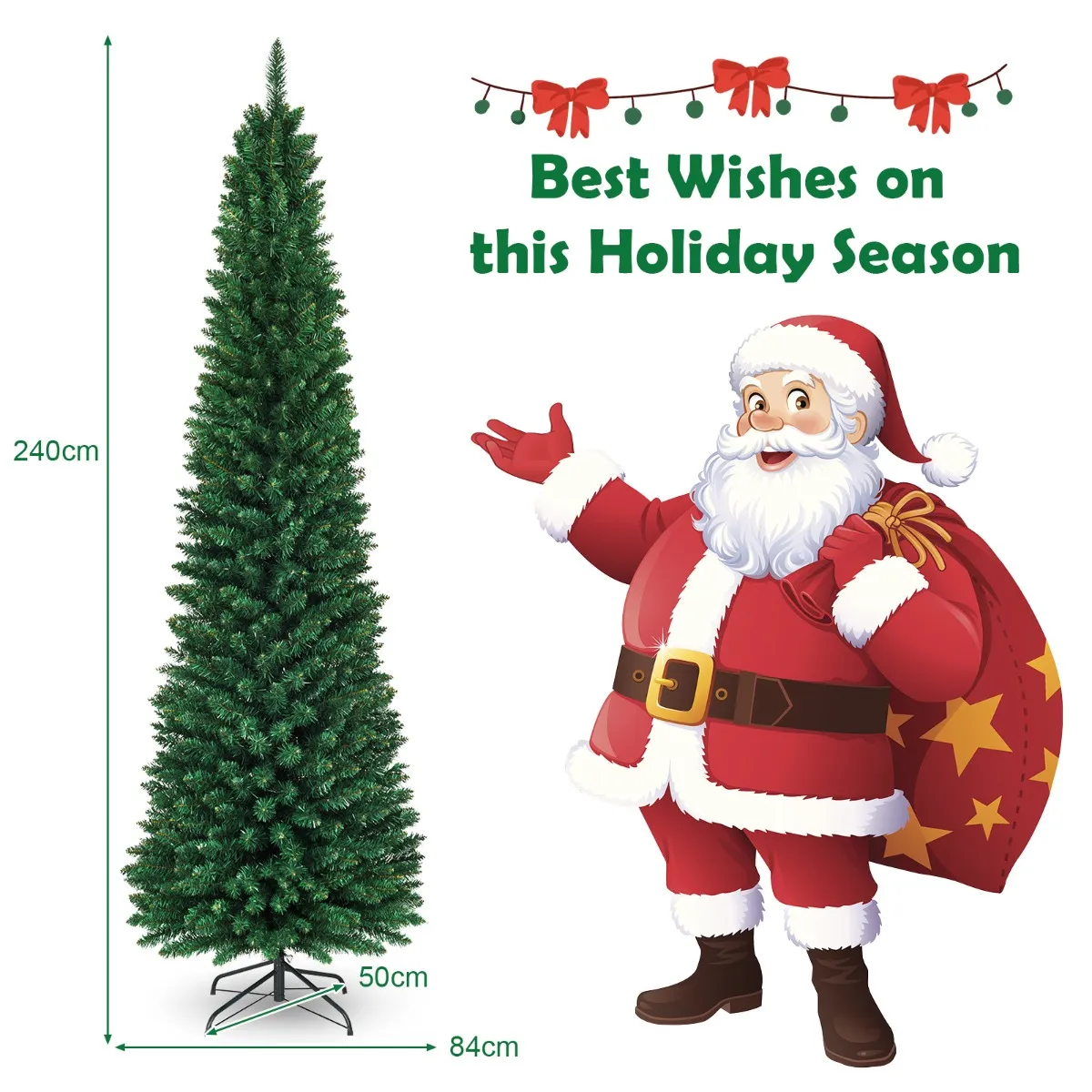 240cm Kerstboom Hoge Kwaliteit PVC Naalden Kunstmatige Potloodvormige Kerstboom Groen