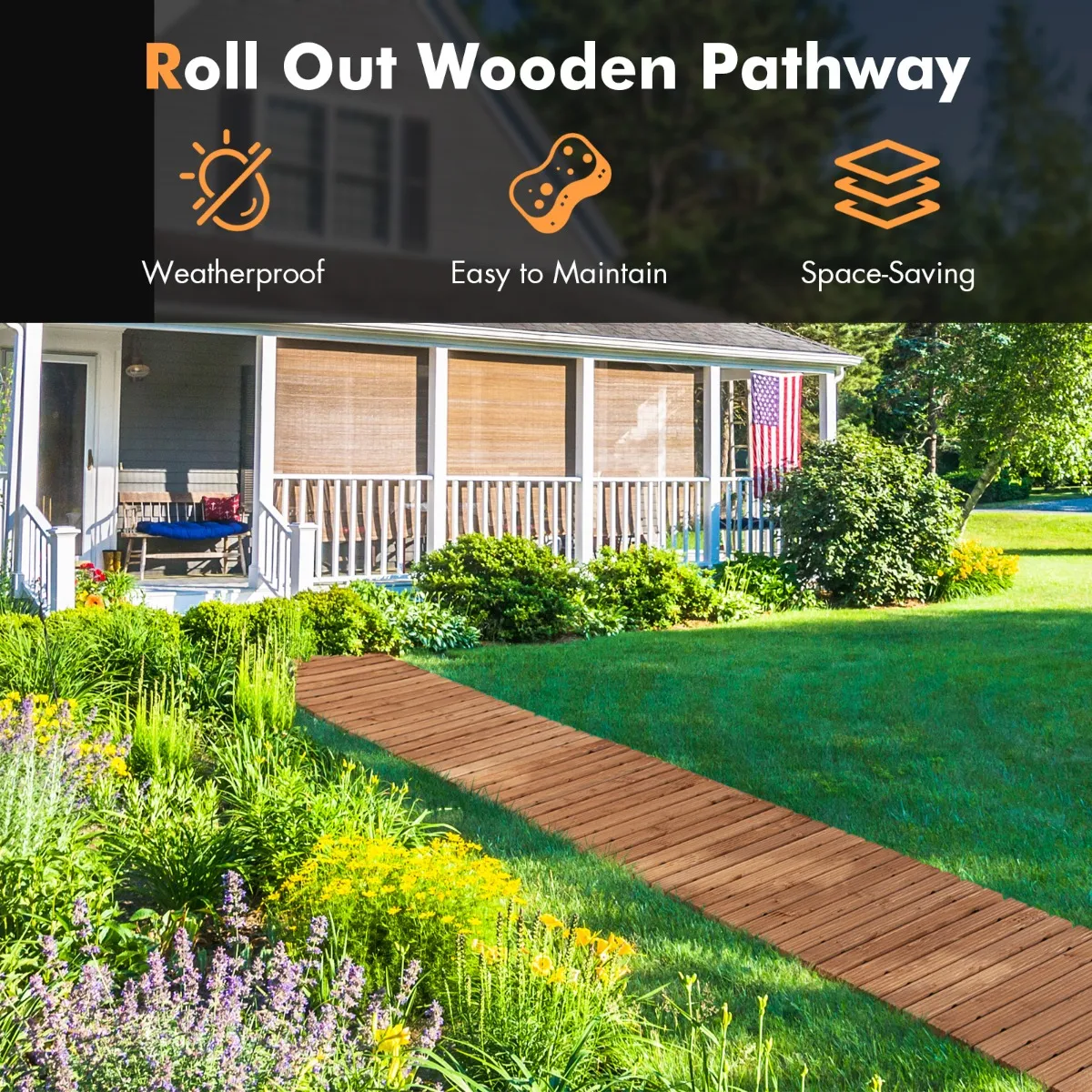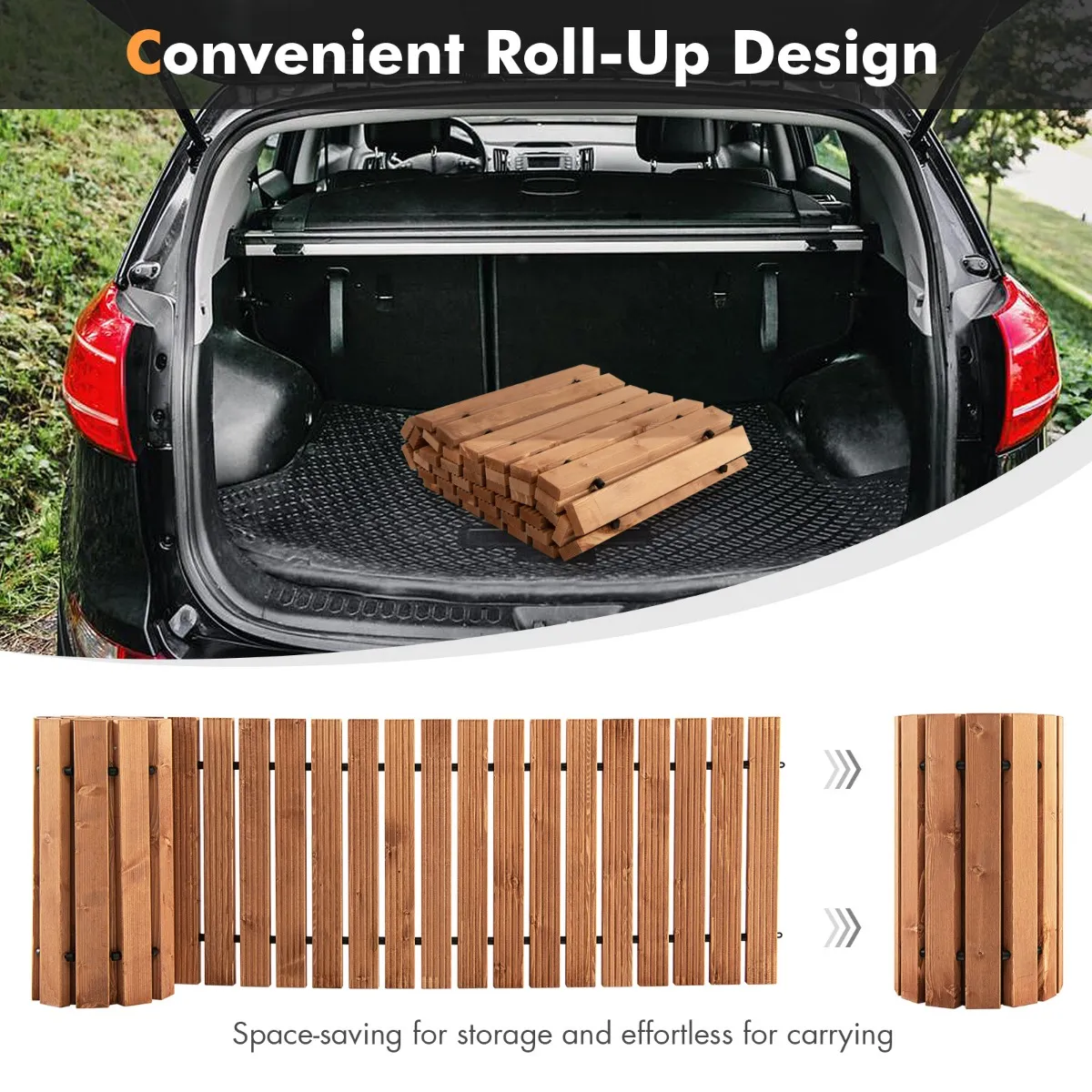Praktisch oprolbaar ontwerp : Als het houten looppad niet wordt gebruikt, kan het snel worden opgerold tot een veel kleiner formaat dat niet te veel ruimte in beslag neemt. Dankzij het compacte opvouwbare formaat is het ruimtebesparend op te bergen en moeiteloos te vervoeren. Je kunt het opbergen in de kofferbak van de auto of in de hoek van je slaapkamer.