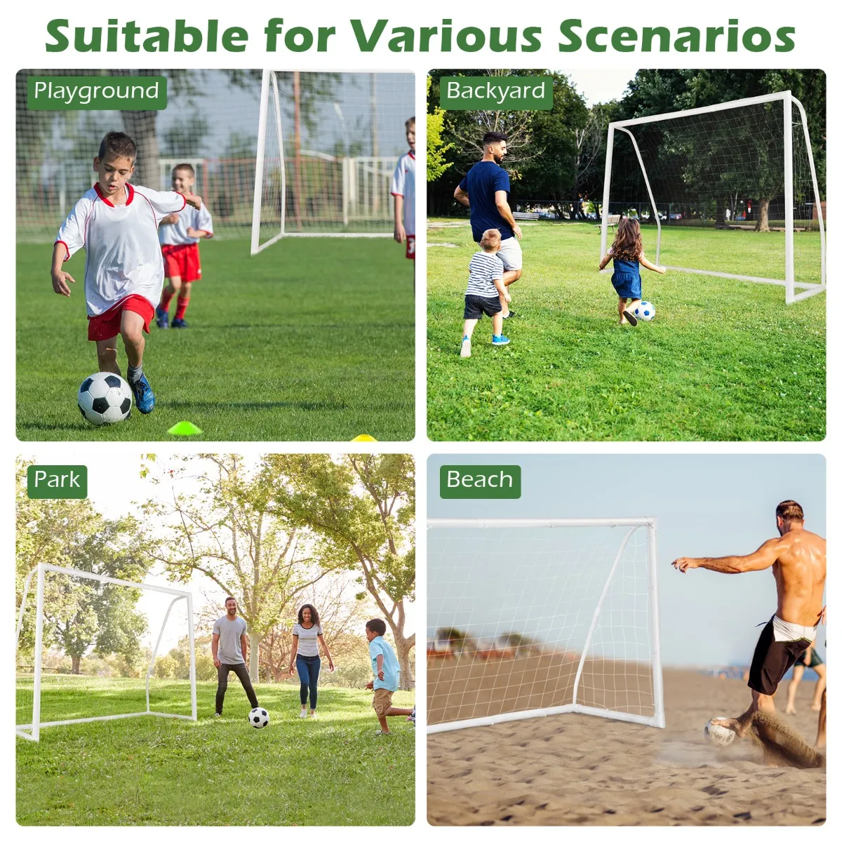 【Verkrijgbaar in meerdere maten】Onze voetbaldoelen zijn verkrijgbaar in 3 maten (245 x 180 cm), waardoor spelers van verschillende leeftijden een ruime speelruimte hebben, perfect voor het oefenen van je voetbalvaardigheden in de tuin of park.