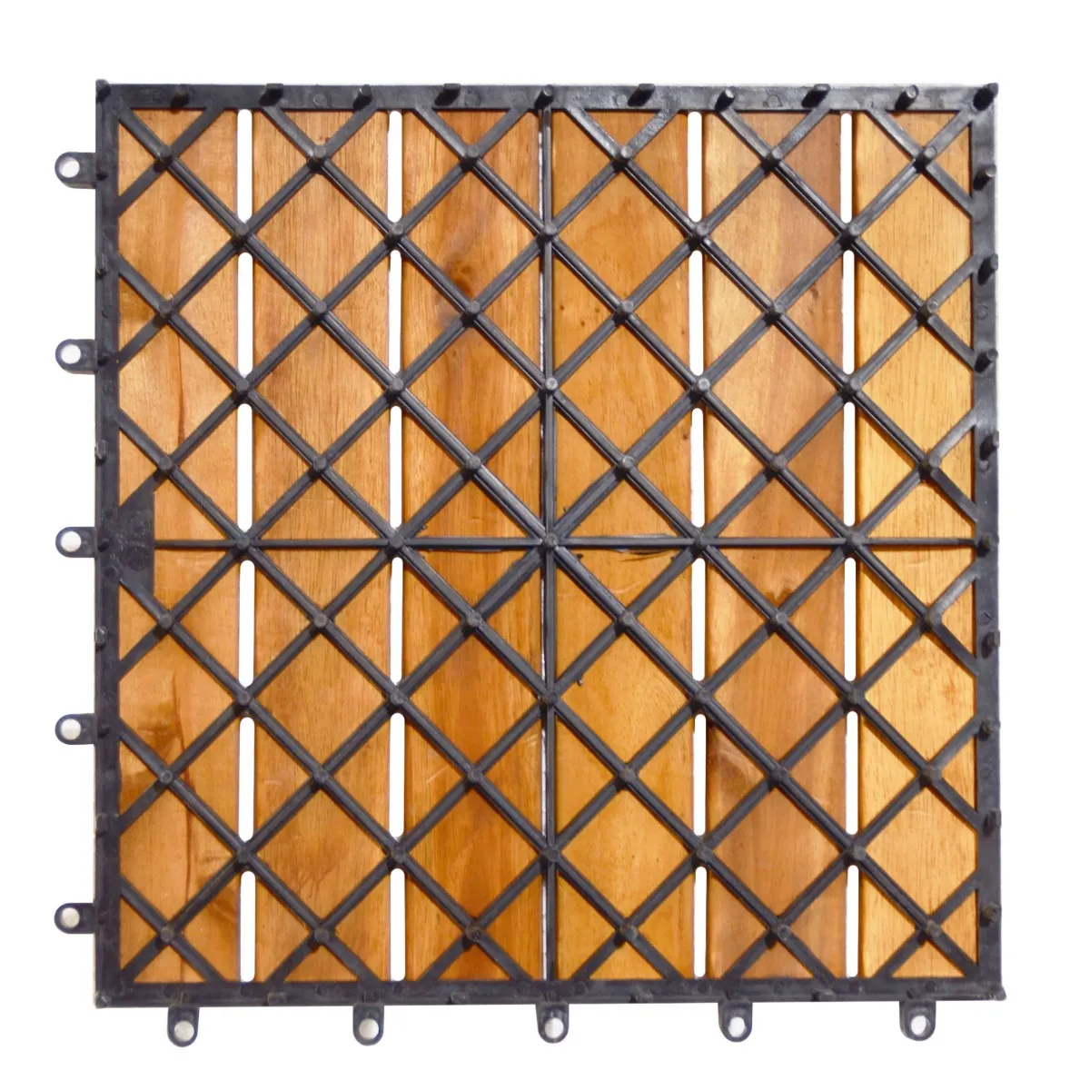Massief acaciahout: De tegel is gemaakt van natuurlijk hardhout en is ontworpen voor een lange levensduur. Hij is al voorgewassen en geolied, zodat hij bestand is tegen betreden en enige wrijving. En de natuurlijke elementen geven je woonruimtes ook een echte hardhouten vloer met een frisse, landelijke touch.