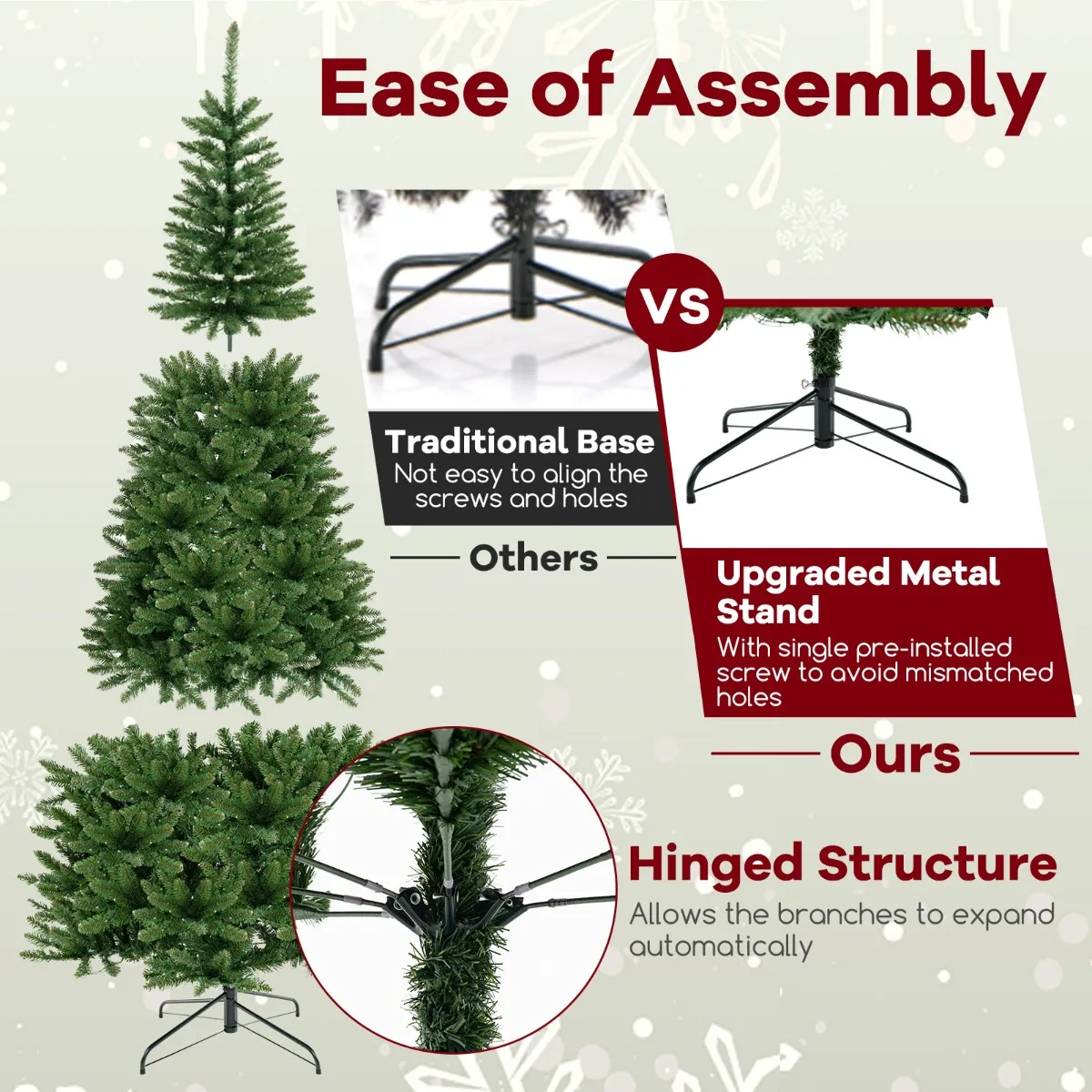【Eenvoudig in elkaar te zetten】 Dankzij de scharnierende structuur hoef je geen vervelende takken meer uit elkaar te halen. De verbeterde metalen beugel biedt stabiliteit en heeft een voorgeïnstalleerde bout voor een stevige pasvorm. Voor extra gemak worden er 2 paar handschoenen meegeleverd voor jou en je gezin.