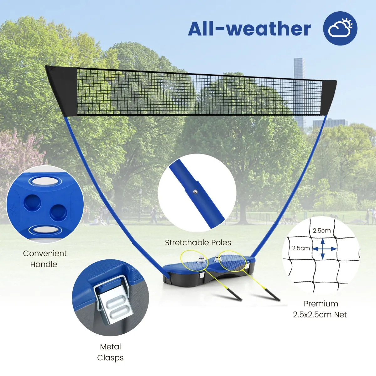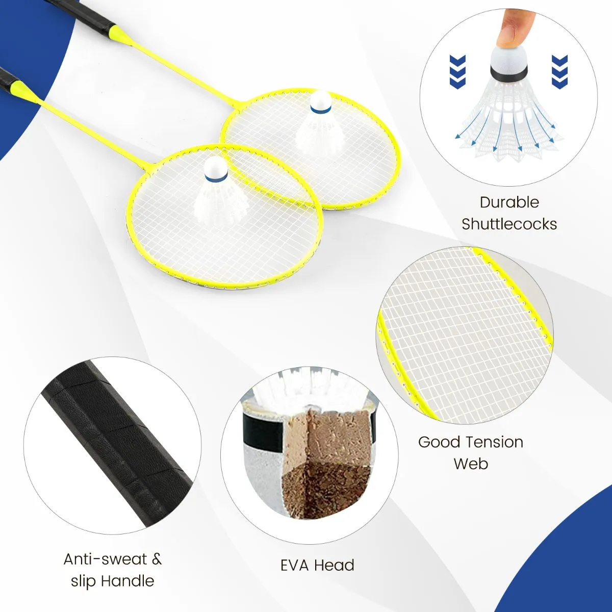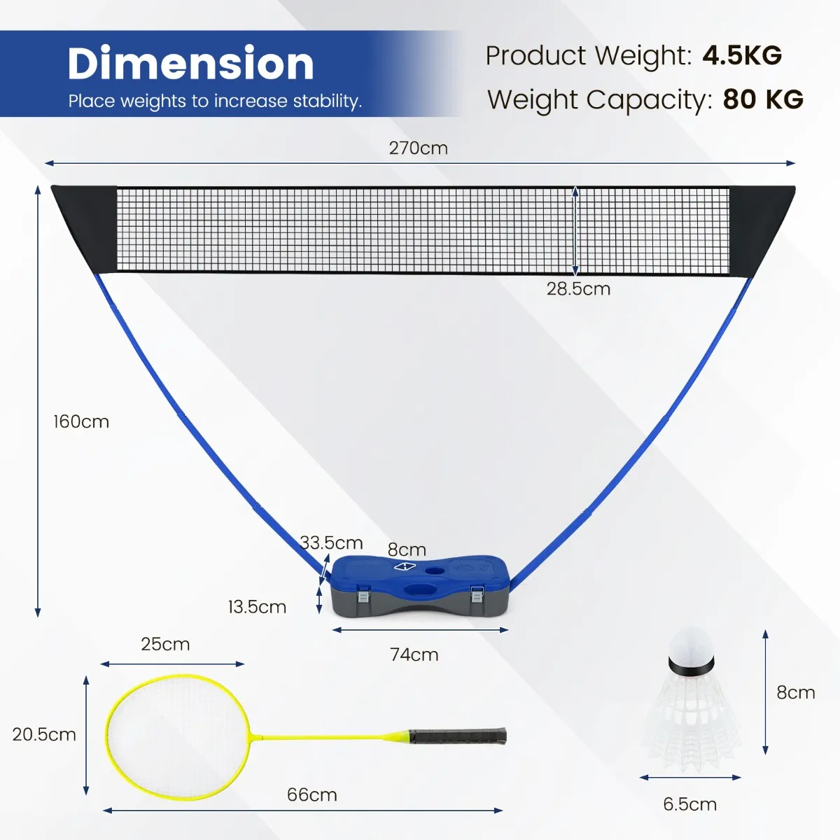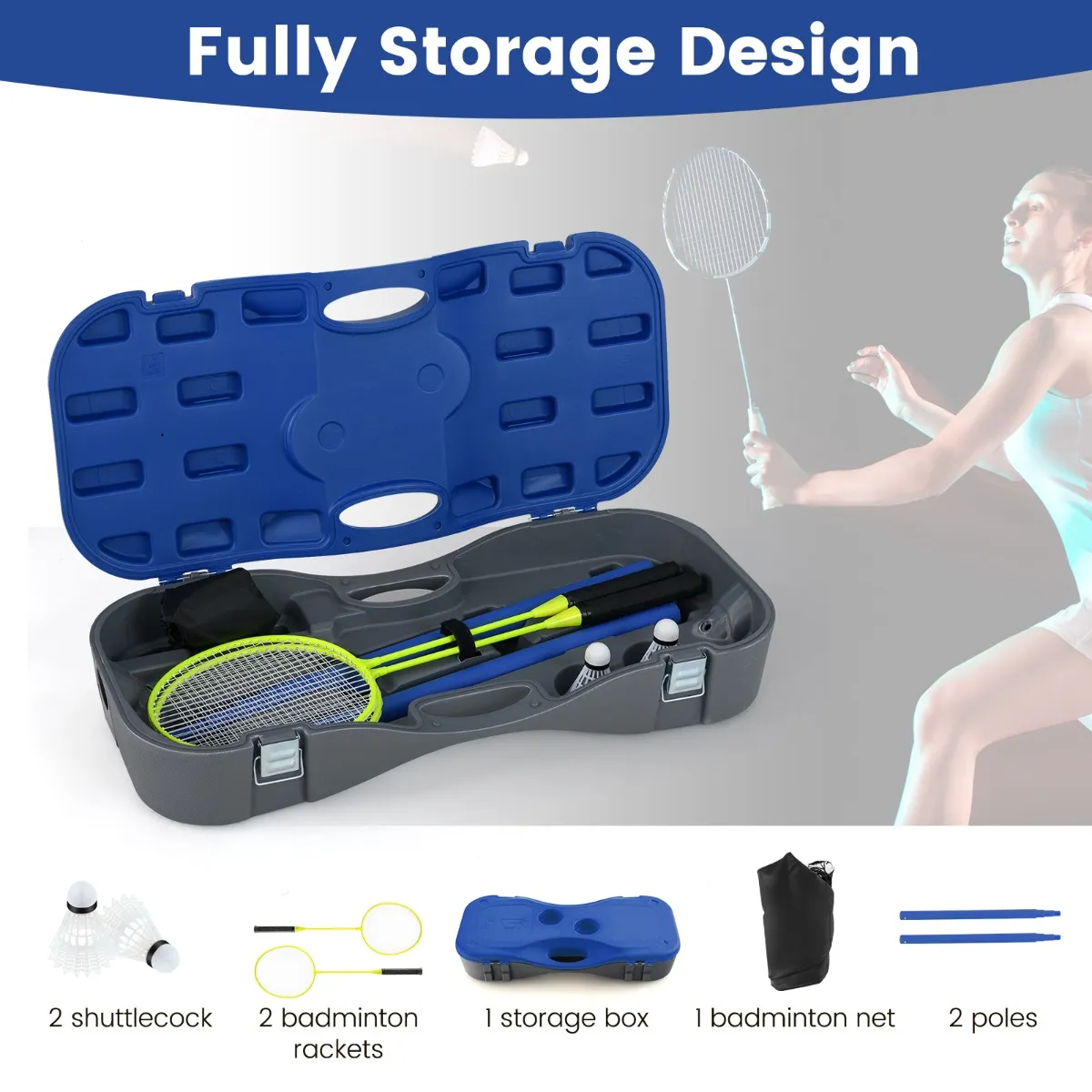 [Alles-in-1 speelset]: Deze badmintonstandaard van kunststof wordt geleverd met een complete uitrustingsset, waaronder 2 veerballen, 2 rackets, 1 opbergdoos en 1 badmintonnet. Deze complete uitrusting zorgt ervoor dat je alles hebt wat je nodig hebt om te spelen.