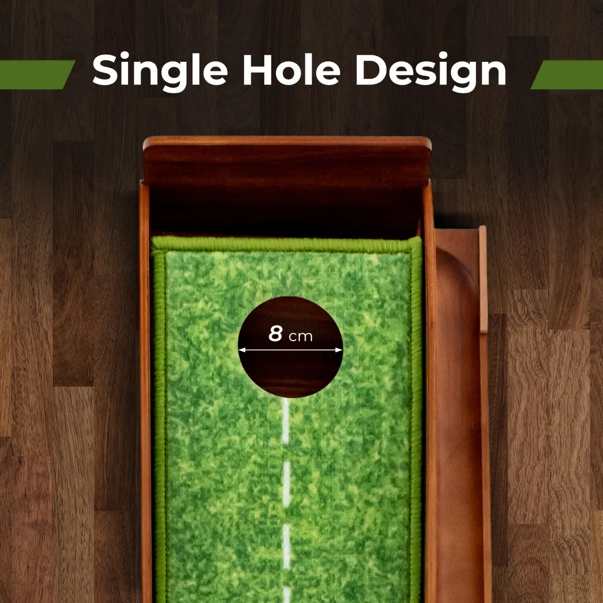 Automatisch balretoursysteem: Deze golfmat heeft een automatisch balretoursysteem, zodat je je golfballen niet na elke putt hoeft op te rapen. Je kunt dus meer tijd besteden aan het oefenen van je slagen en minder tijd aan het bukken om ballen op te rapen.