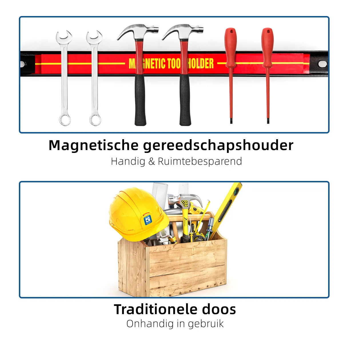 Creëert ruimte op het werkoppervlak: Dankzij het elegante en ruimtebesparende ontwerp van onze magneetstrip heb je een veel groter oppervlak om je werk te voltooien.