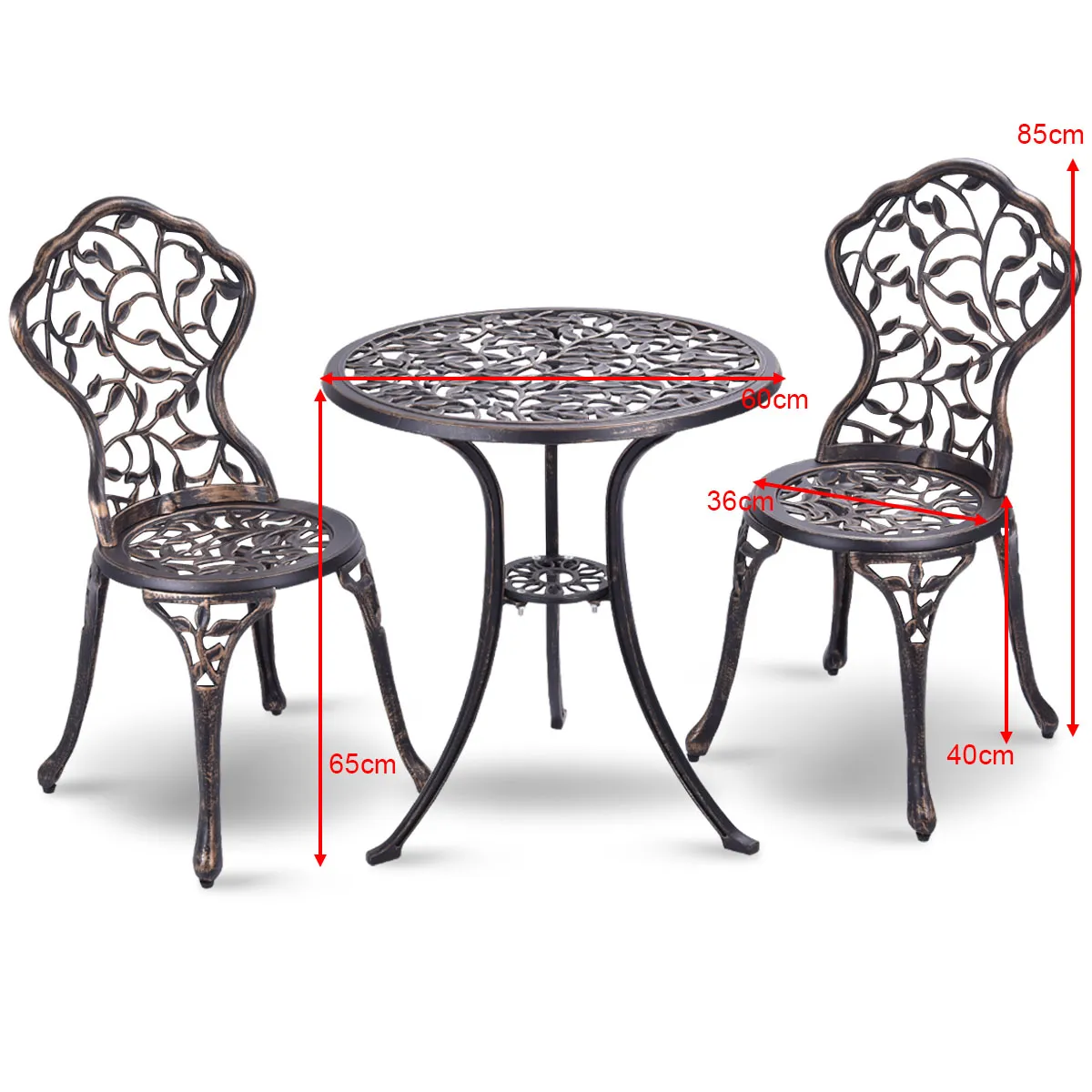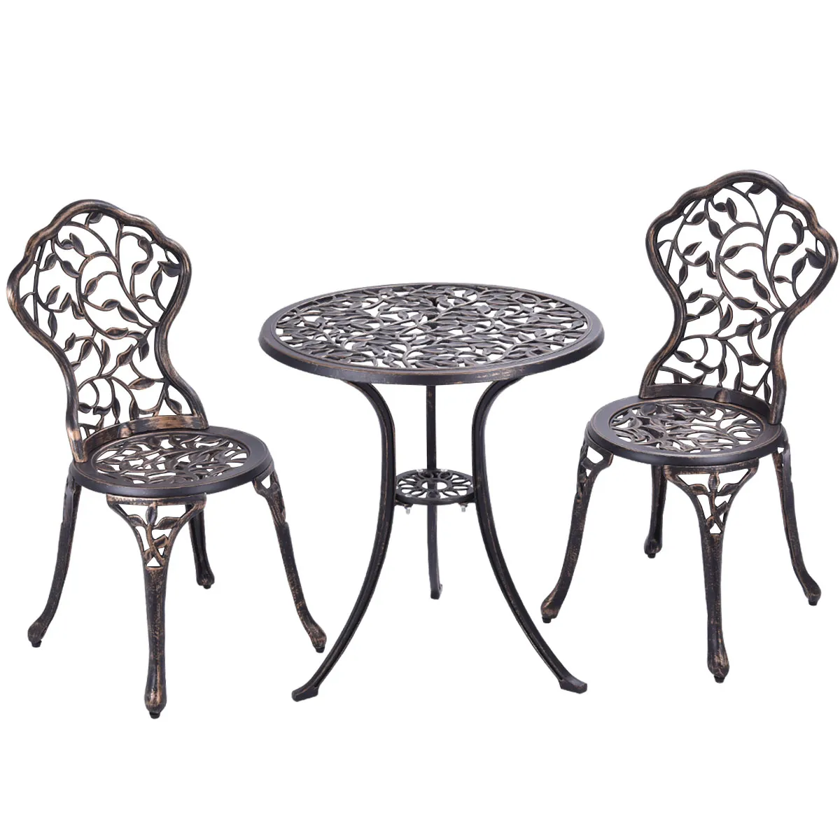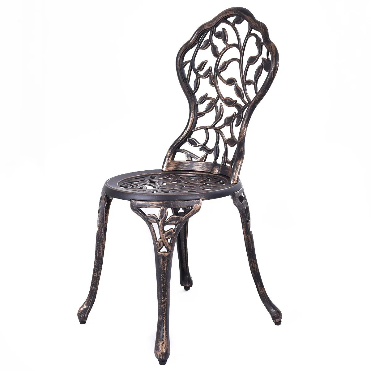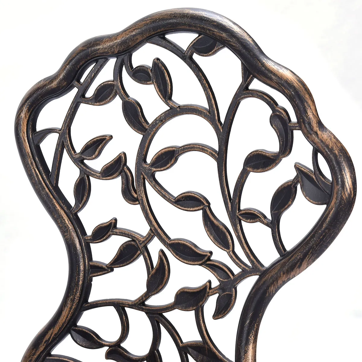 Met antieke uitstraling en bladeren ontwerp, deze openlucht gesprek set biedt niet alleen een comfortabele plek om te verzamelen rond, maar maakt een opvallende aanvulling op uw huis decoratie. Dankzij het anti-roest gegoten aluminium, is deze hoge kwaliteit bistro set geschikt voor gebruik buitenshuis, zoals balkon, achtertuin, tuin en nog veel meer. En hij kan indien nodig ook binnenshuis worden gebruikt. Bovendien zorgen de verstelbare voetsteunen voor extra stabiliteit en passen ze op een oneffen ondergrond.