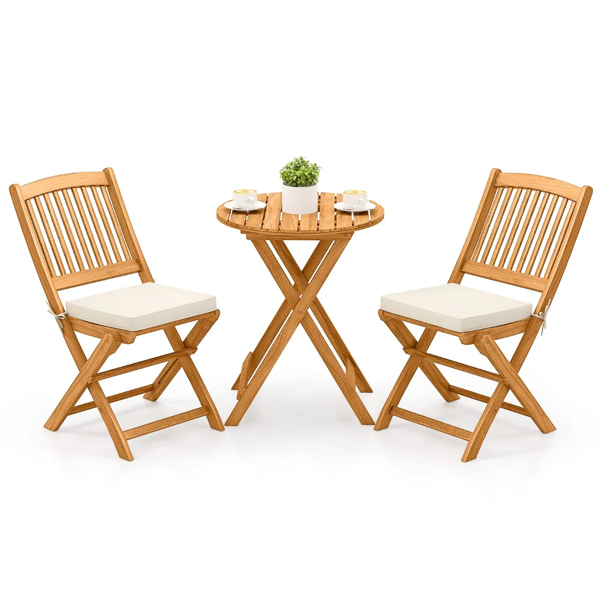 Breng de natuurlijke schoonheid van hout naar je tuin of balkon met deze 3-delige opklapbare bistroset van acaciahout. Â