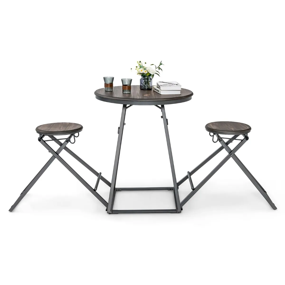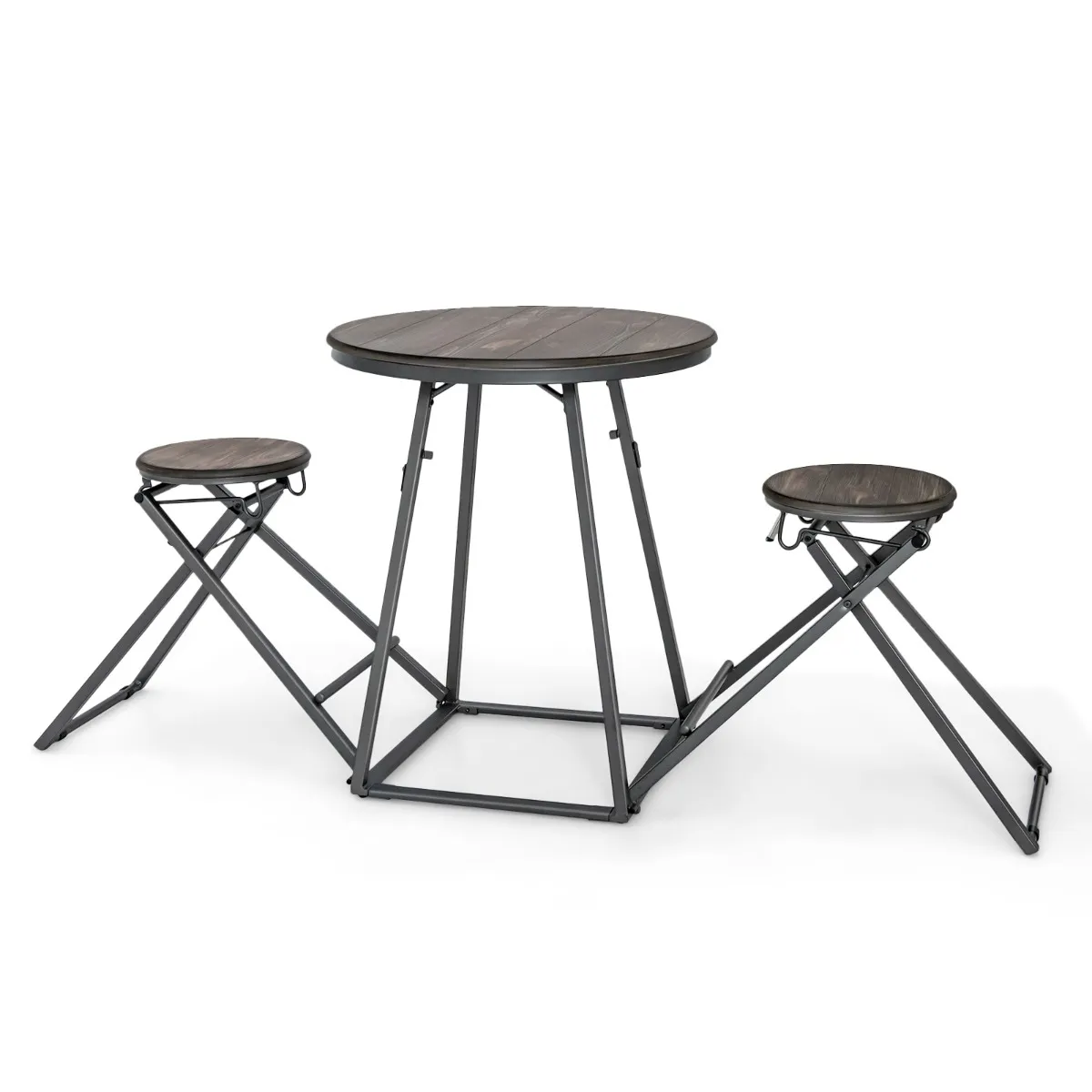 【Inklapbaar en ruimtebesparend ontwerp】 De 2 ronde krukjes zijn verbonden met de tafel. Als ze niet worden gebruikt, kunnen deze krukken worden ingeklapt en aan de tafelpoten worden gehangen. Deze inklapbare bartafel en krukenset is een goede oplossing voor bewoners met beperkte woonruimte.