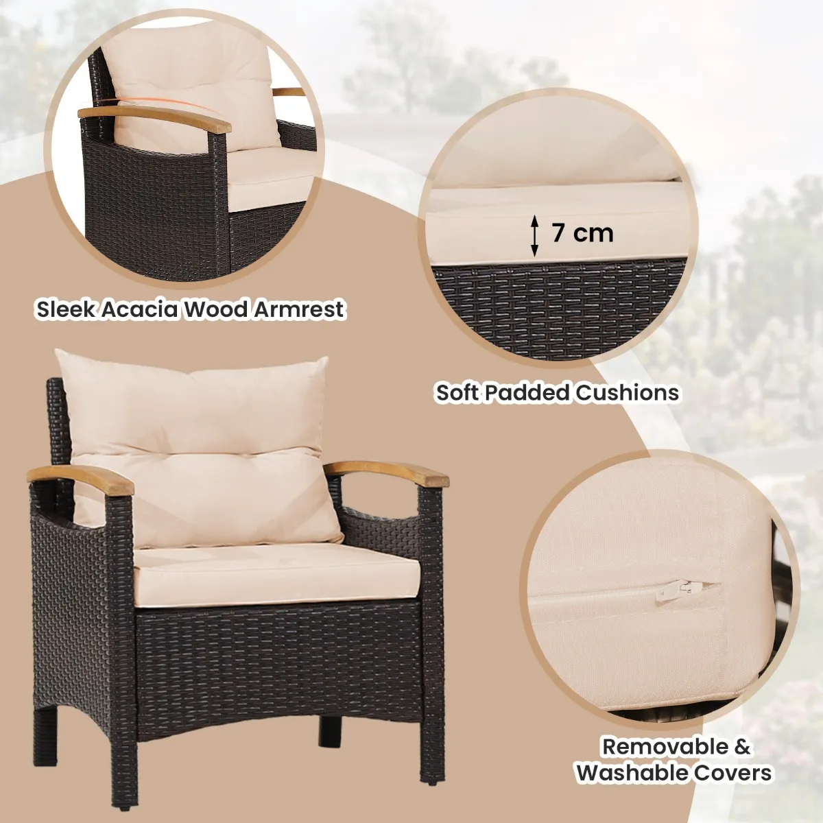 - Materiaal: PE rotan, Metaal, Acaciahout, Spons, Polyester stof