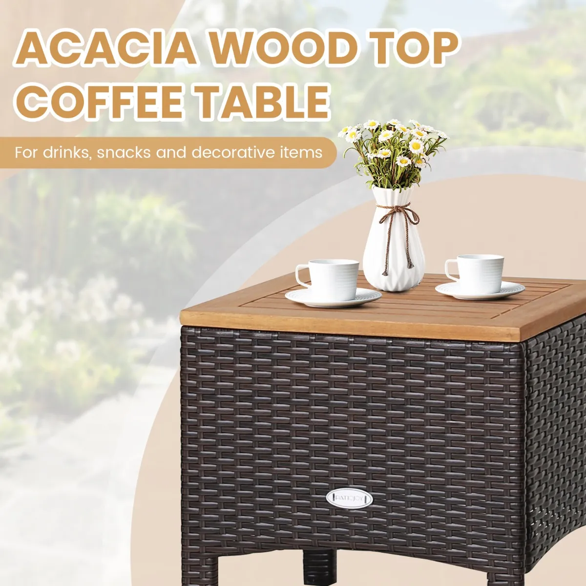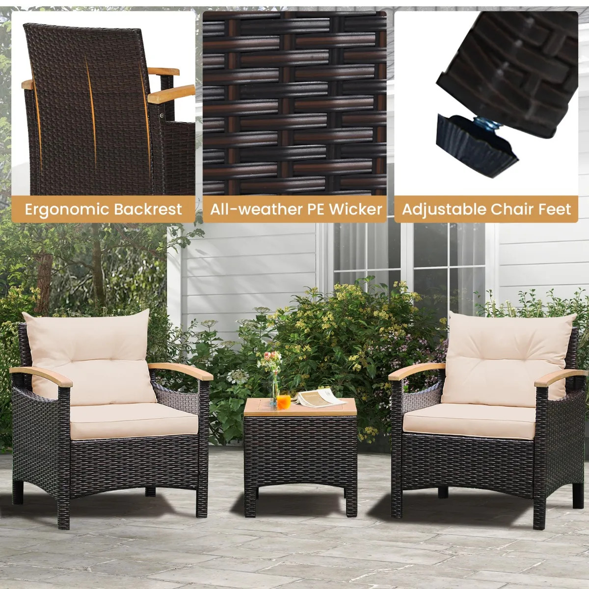 Elegante stijl en brede toepassing : Met zijn elegante uiterlijk past deze 3-delige patioset goed bij buitenomgevingen of binnen inrichtingsstijlen. U kunt hem plaatsen bij het zwembad, op de veranda, op het balkon, enz. Of het nu individueel of in combinatie wordt gebruikt, deze veelzijdige rotan meubelset zal het hoogtepunt van uw buitenruimte zijn.