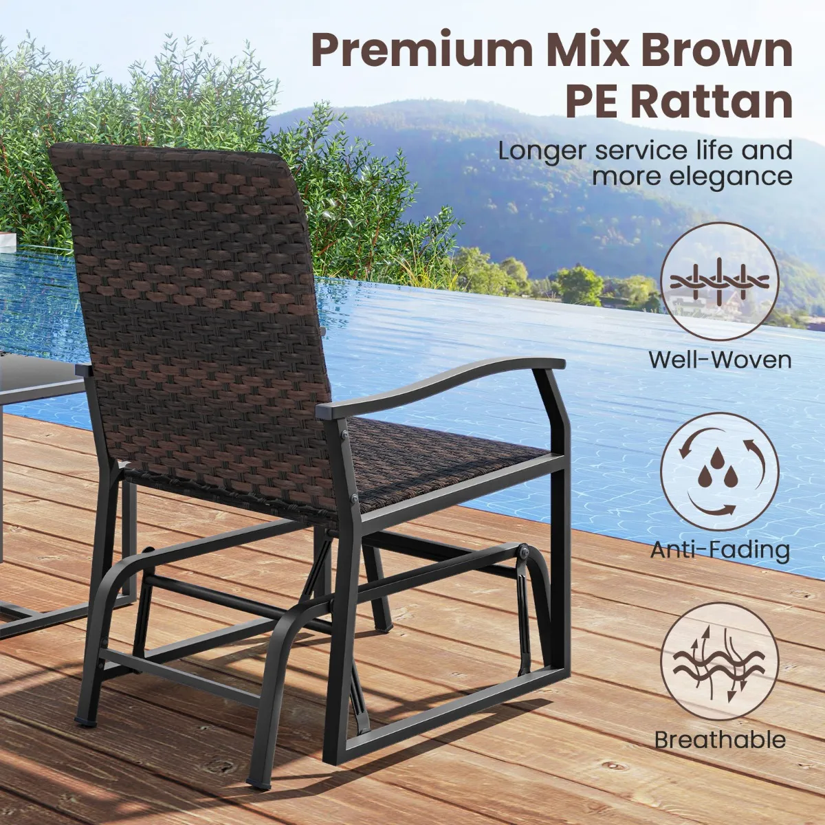 Geweven rieten ontwerp – De stoelen in deze terras schuifset zijn gemaakt van hoogwaardig bruin PE gemengd rotan dat goed geweven, kleurvast en ademend is. Het rieten ontwerp voegt perfect rustieke charme toe aan je buitenruimte en gaat lang mee.