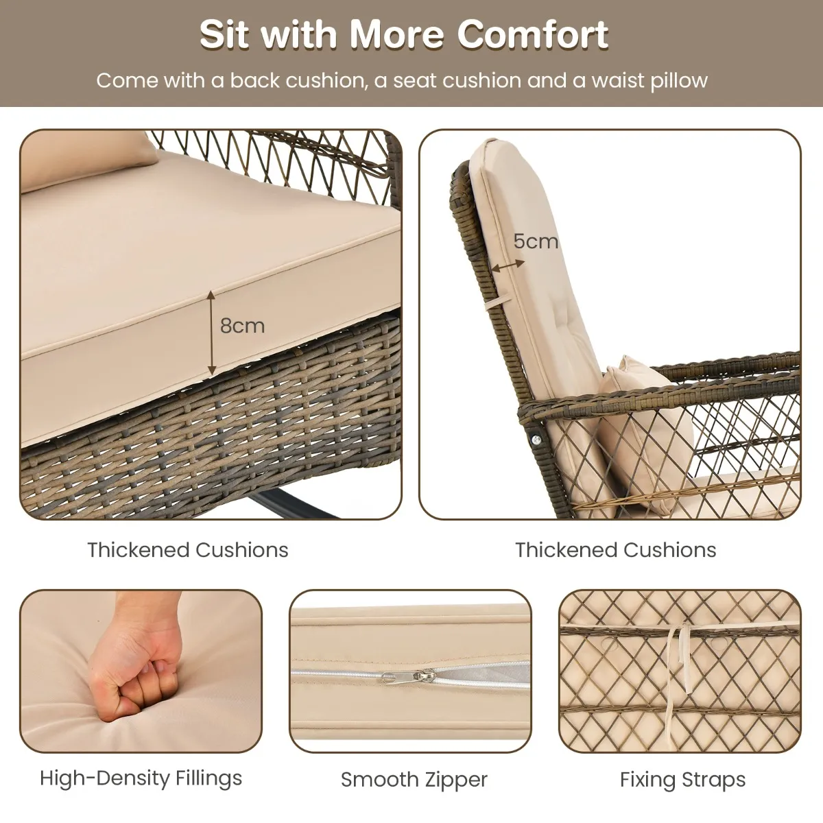 Deze 3-delige schommelstoelset zal je vermoeidheid effectief verlichten.