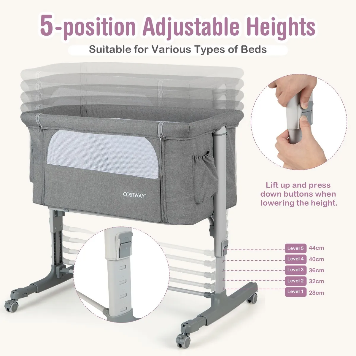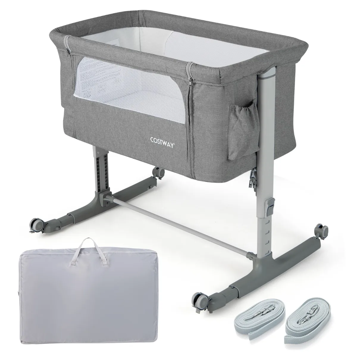 Behalve als bijslaper kan dit bijzetbedje ook fungeren als een normaal babymandje of een wiegje. Met een verstelbare hoogte van 5 niveaus is de zijslaper geschikt voor het bed van ouders met verschillende hoogtes. De 10° kanteling kan voorkomen dat uw baby melk morst. En de knusse matras en de huidvriendelijke rand zorgen voor comfort en veiligheid. Bovendien kunt u de status van uw baby weten dankzij de ademende mazen. Dankzij de verplaatsbare en vergrendelbare wielen kunt u dit wiegje gemakkelijk verplaatsen en stabiel houden als het stilstaat. Als u weg moet, kunt u dit ook meenemen omdat er een draagtas bij zit. Bovendien vergemakkelijkt het ontwerp met rits de dagelijkse reiniging.