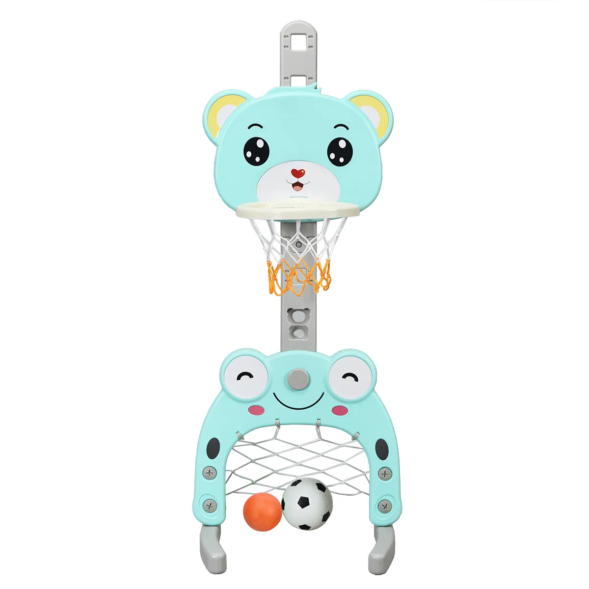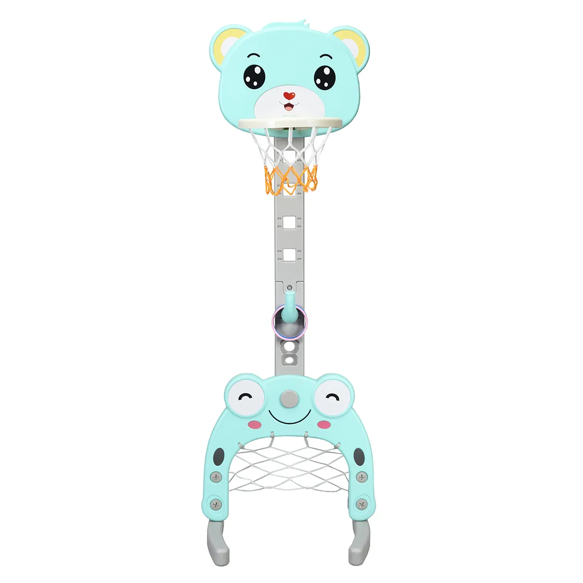 Onze schattige basketbalstandaard in de vorm van een dier helpt kinderen bij het ontwikkelen van hun sociale vaardigheden, fysieke coördinatie en balans. Dit 3-in-1 sportcentrum laat kinderen genieten van het plezier en het vertrouwen van basketballen, voetballen en worstelen, en het ontwikkelt het begrip van teamgeest en ambitie. Het schattige en stijlvolle uiterlijk zal onmiddellijk de interesse van uw kind wekken en zal hun liefde voor basketbal inspireren. Er zijn 5 verstelbare hoogtes van de basketbalstandaard om aan te passen aan de hoogte van verschillende leeftijden. Daarnaast kun je de basis verzwaren met water of zand om de stabiliteit van de speelset te vergroten. Onze basketbalstandaard is het perfecte cadeau voor kinderen!