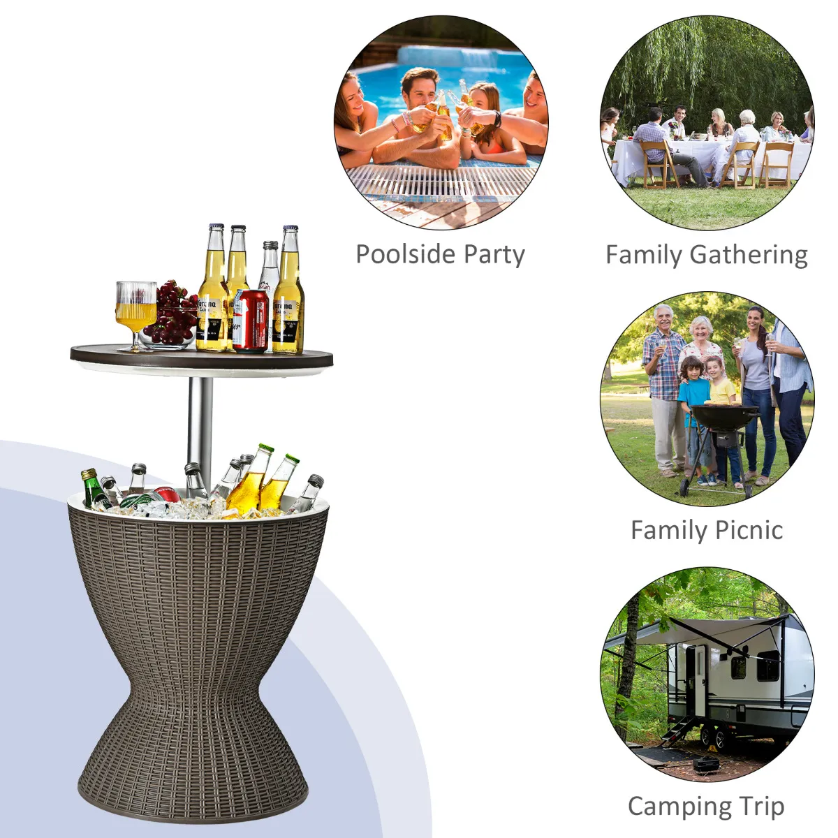 Wilt u een ijskoeler en een perfecte bijzettafel tegelijkertijd bezitten? Onze ijskoeler met intrekbaar tafelblad is uw ideale keuze. 30L opslagcapaciteit is genoeg om drankjes en snacks voor een groep mensen te houden. Met het uitschuifbare tafelblad kunt u onze ijsemmer omtoveren tot een praktische koffietafel, die u met de knop kunt vergrendelen. Om het feest gaande te houden, kan onze ijskoeler drankjes gedurende meerdere uren koud houden. De gladde binnenlaag is gemakkelijk schoon te maken en te onderhouden, terwijl de afvoerplug meer gemak brengt om gesmolten ijs en water te legen. Met zijn rotan uiterlijk combineert deze ijsemmer functionaliteit met mode.