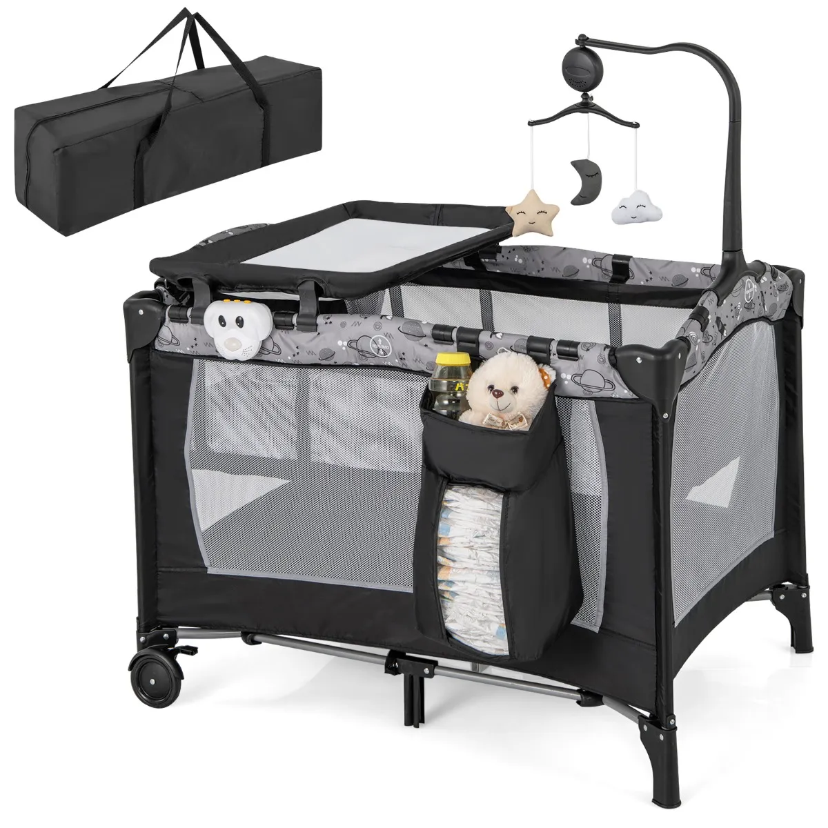 Deze 3-in-1 box doet dienst als een knusse wieg, een wieg en een praktische luiertafel om samen met je baby op te groeien. De opbergtas aan de zijkant zorgt ervoor dat alle benodigdheden bij de hand en georganiseerd zijn. De toevoeging van 3 leuke hangspeeltjes en een muziekdoosje met verschillende lichtstanden stimuleert de visuele en motorische vaardigheden. Hij wordt geleverd met 2 vergrendelbare wielen, zodat je hem veilig kunt verplaatsen. Je kunt hem ook gemakkelijk opvouwen en opbergen in de meegeleverde draagtas om hem gemakkelijk op te bergen of mee te nemen op reis.