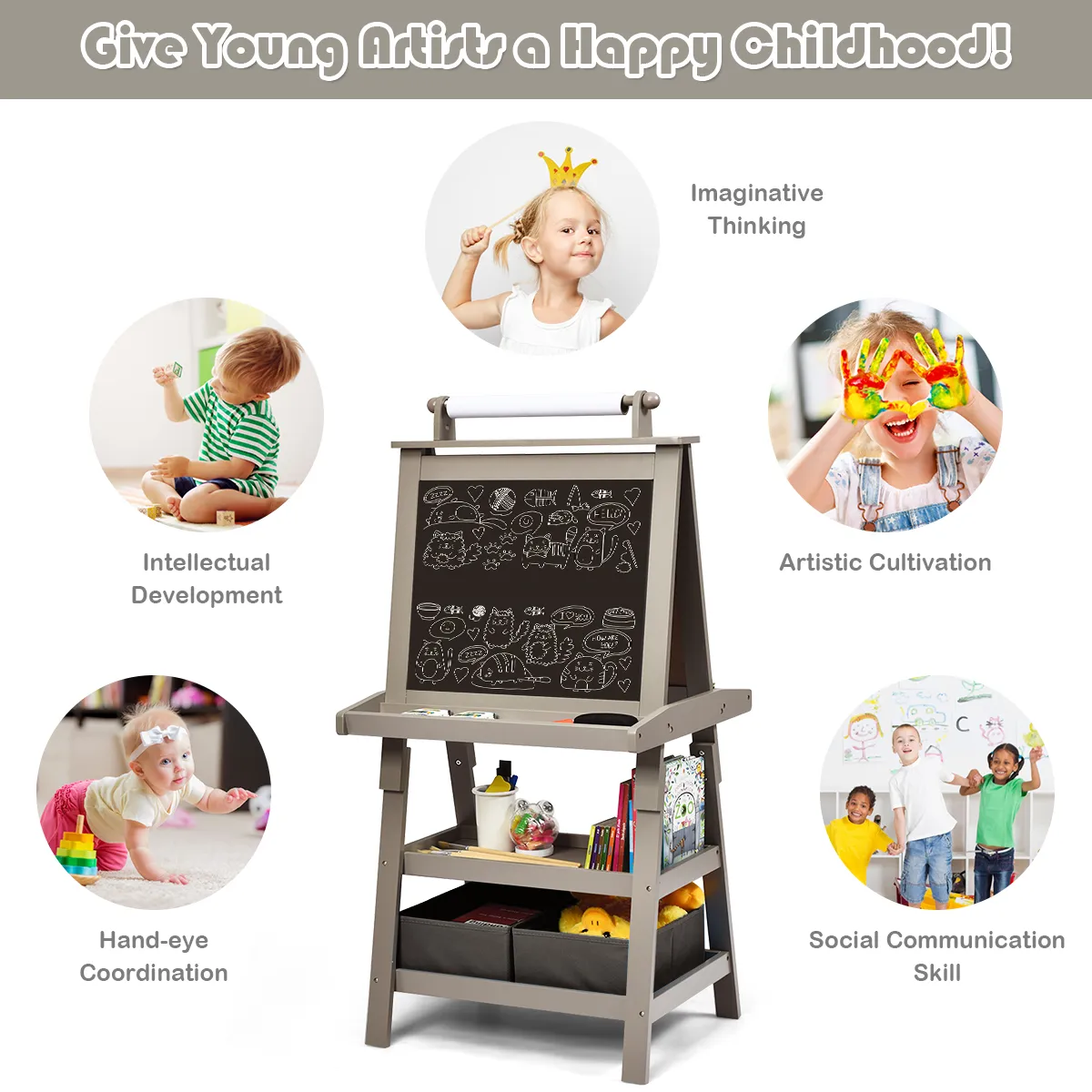 Royale opbergruimte: Onder het tekenoppervlak aan weerszijden van de ezel bevindt zich een plank, die voldoende ruimte biedt voor schilderaccessoires. Zo hebben kinderen snel toegang tot hun pennen, krijtjes, enz., zodat ze op elk moment kunstwerken kunnen maken. Bovendien heeft de schildersezel twee niveaus met planken die van beide kanten kunnen worden bereikt, zodat je kleine tekentalent alle belangrijke accessoires netjes en ordelijk op één plek kan houden.