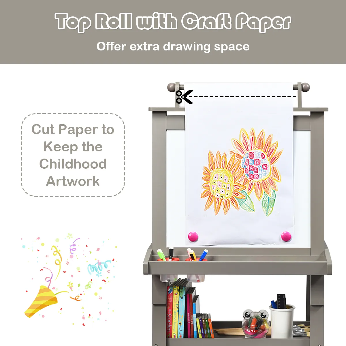 3-in-1 ontwerp: Deze houten schildersezel heeft tekenborden aan beide zijden en een papierrolhouder. Het krijtbord is te beschilderen met krijt, terwijl je kinderen de bijpassende pennen op het whiteboard kunnen gebruiken zonder stof te veroorzaken. Je kunt ook papier van de rol afrollen en met twee magneten bevestigen zodat je erop kunt schilderen.