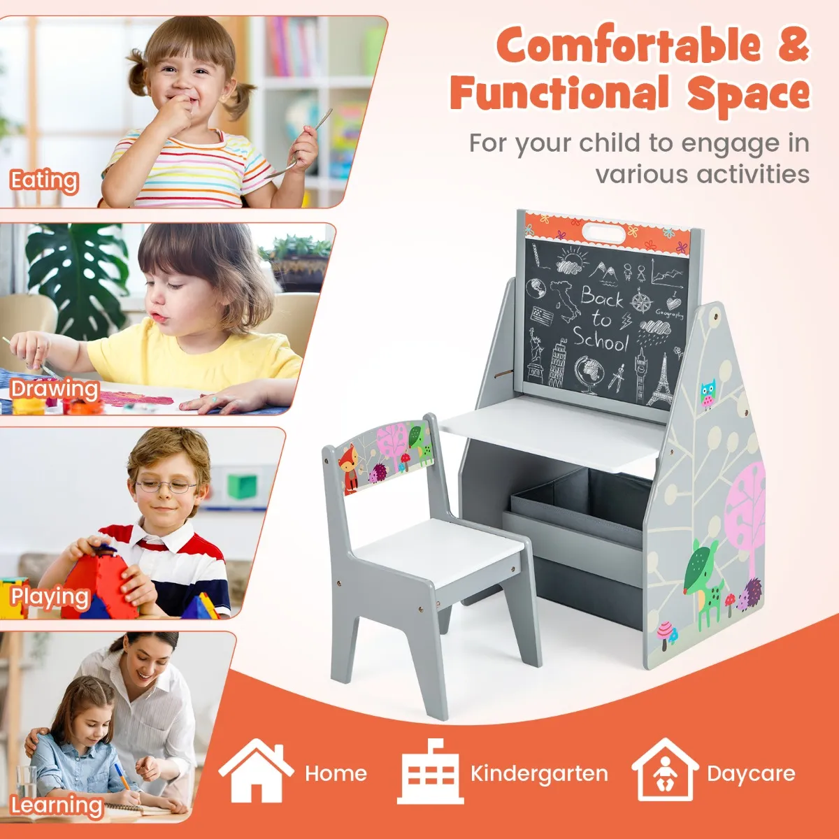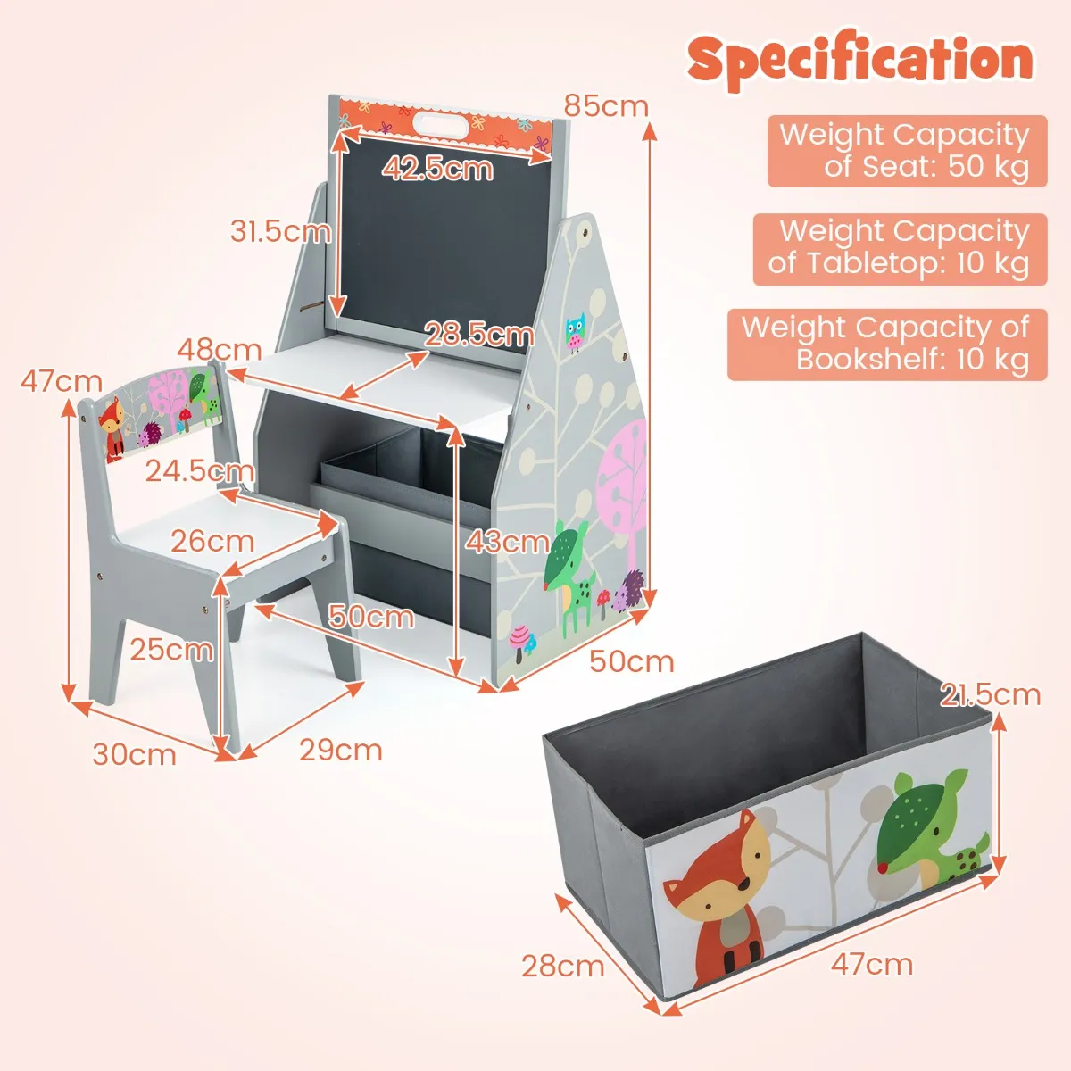 Kan worden gebruikt als schildersezel, tafel- en stoelenset en opbergorganizer voor kinderen