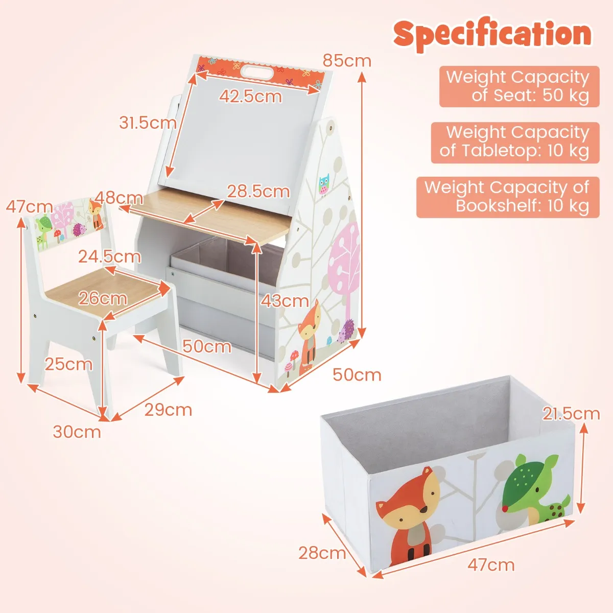 Kan worden gebruikt als schildersezel, tafel- en stoelenset en opbergorganizer voor kinderen