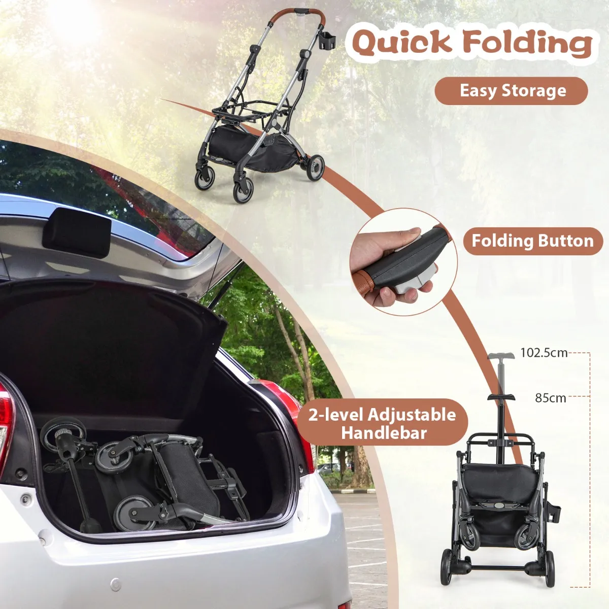 【 Doordacht vouwontwerp】 Geleverd met een grote opbergmand, bekerhouder en 2 kleine vakken, al je benodigde reisspullen en waterflessen kunnen op de juiste plaats worden gezet. Dankzij het ontwerp met één knop kun je de kinderwagen compact opvouwen en in de hoeken opbergen als je hem niet gebruikt.
