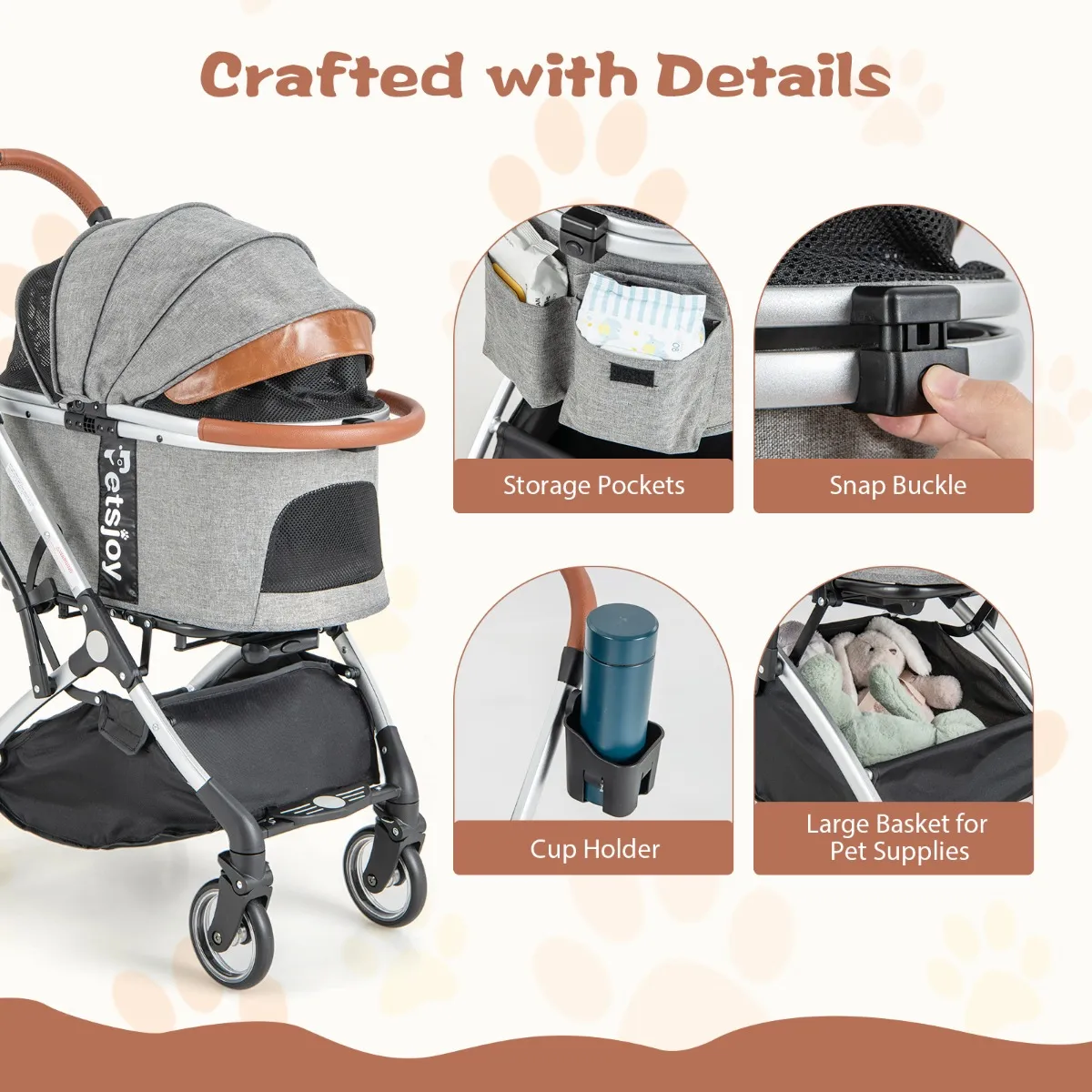 【Het 3-in-1 ontwerp voldoet aan meer behoeften】Het transportgedeelte is afneembaar en kan dus gebruikt worden als autostoel. Met het geïntegreerde handvat is het ook een draagbare dierendrager! Als je hem als kinderwagen gebruikt, kun je met het in 2 niveaus verstelbare handvat met je huisdieren op de gewenste hoogte lopen. Een perfecte keuze dus om huisdieren mee te nemen op reis!