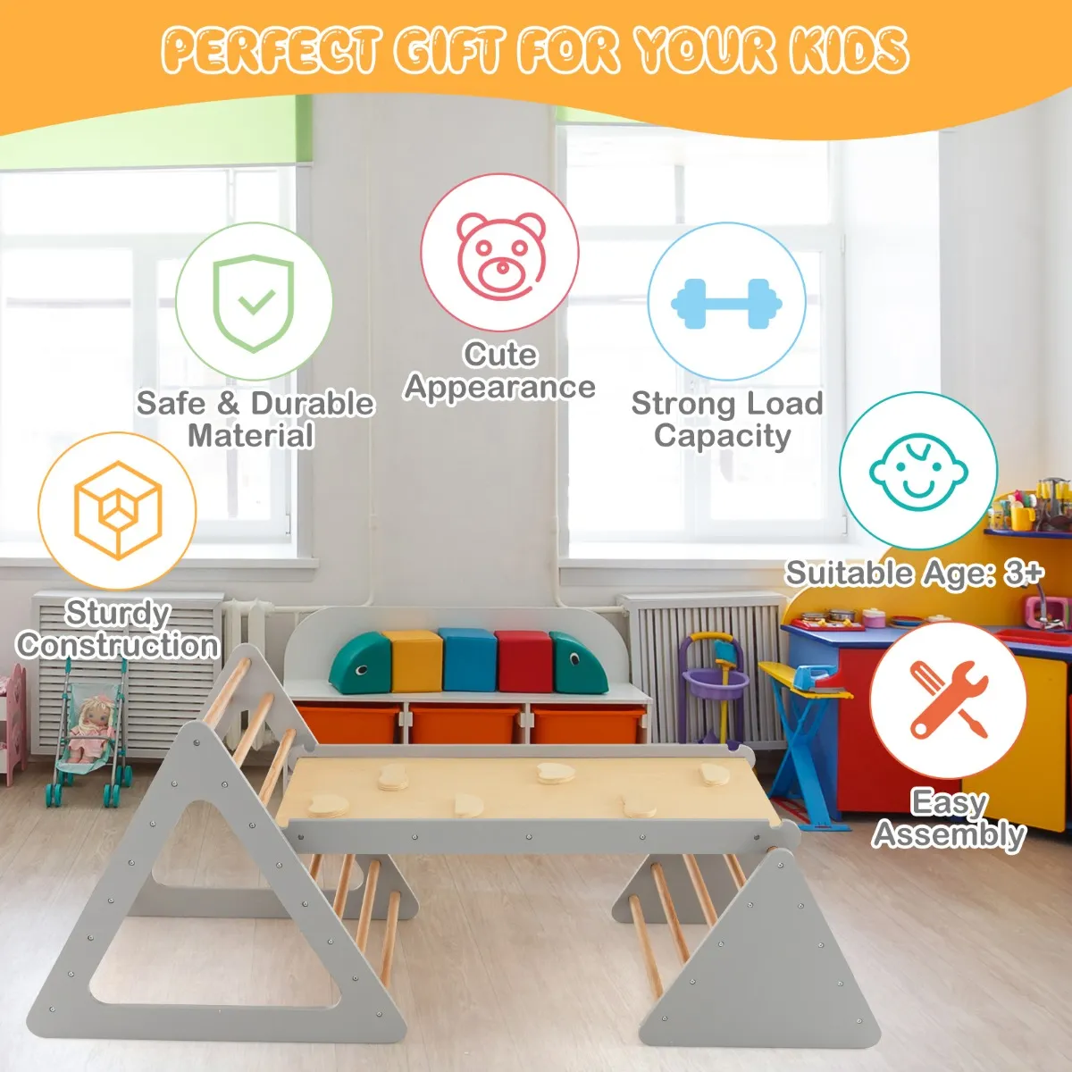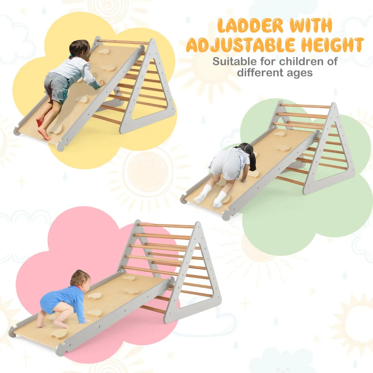 3-in-1 klimset: Deze klimset bevat 2 driehoekige ladders van verschillende grootte en 1 helling voor klimmen en glijden, waardoor de balans, motoriek en moed worden gestimuleerd en aan verschillende behoeften worden voldaan.
