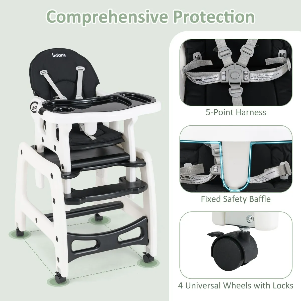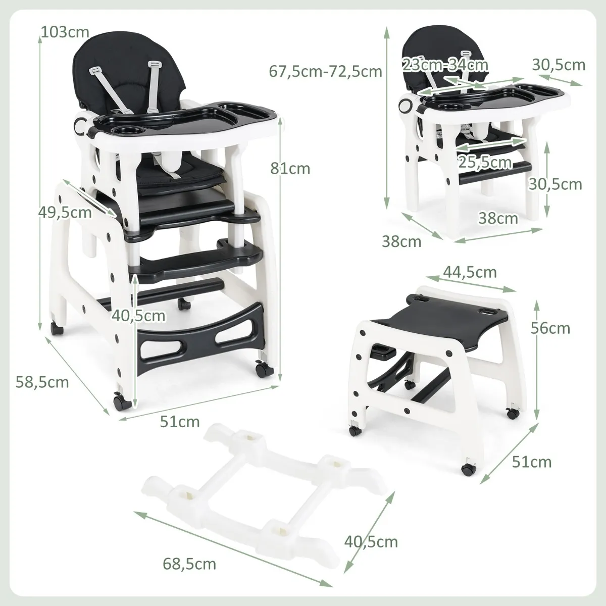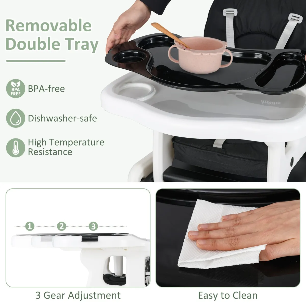 3-In-1 Omvormbare Voedingsstoel/Babytafel En Stoel Met Verwijderbare Lade Met 4 Standen Zitkussen Rugleuning Met 3 Standen-Zwart