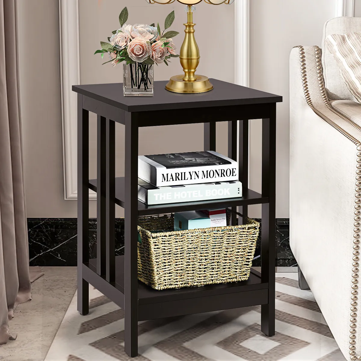 【Ruime opbergruimte】Wordt geleverd met drie niveaus van opbergvak, deze bijzettafel is praktisch en gemakkelijk om uw dagelijkse benodigdheden te organiseren. Items kunnen op het bureaublad of op de onderste planken worden geplaatst, afhankelijk van uw verschillende behoeften en voorkeuren.