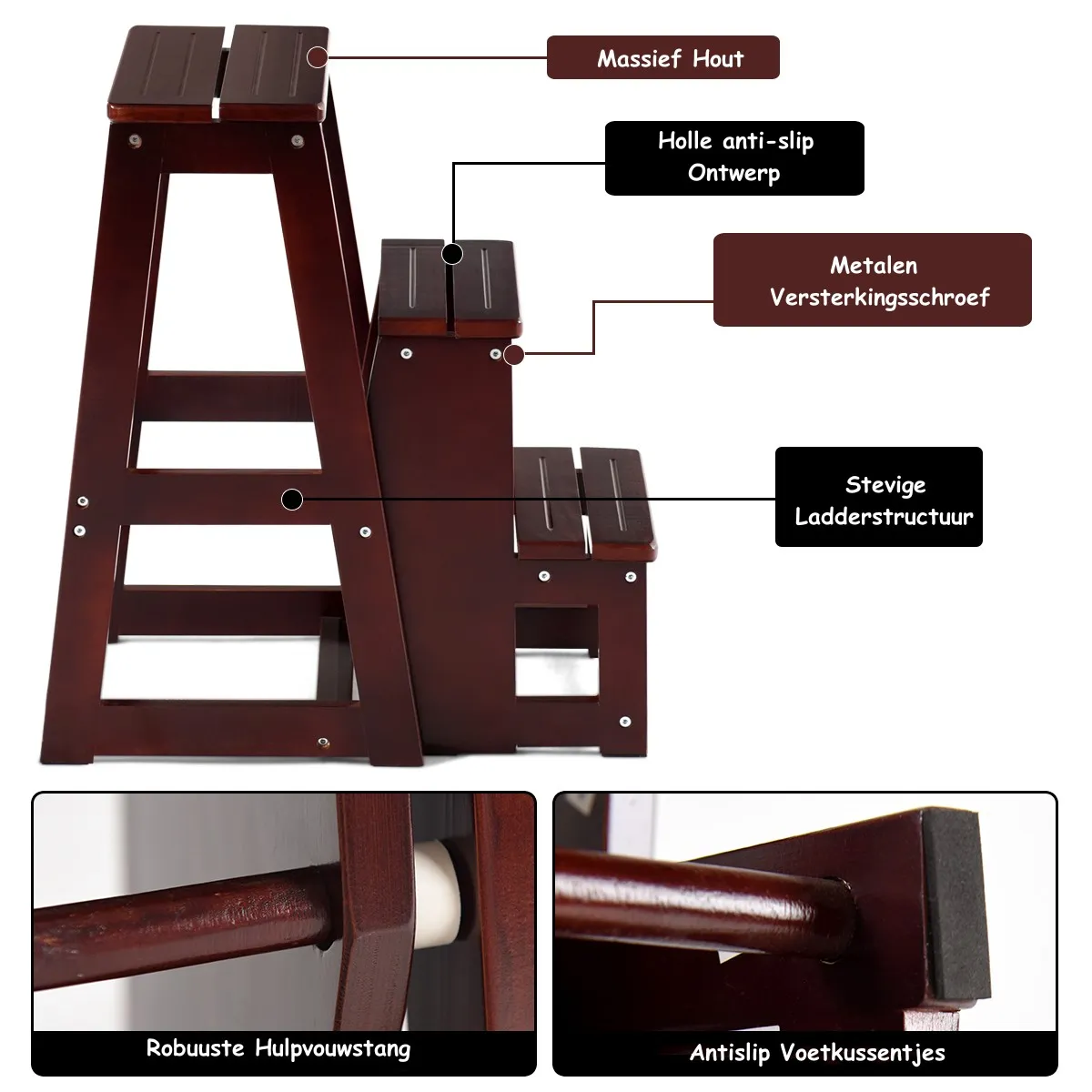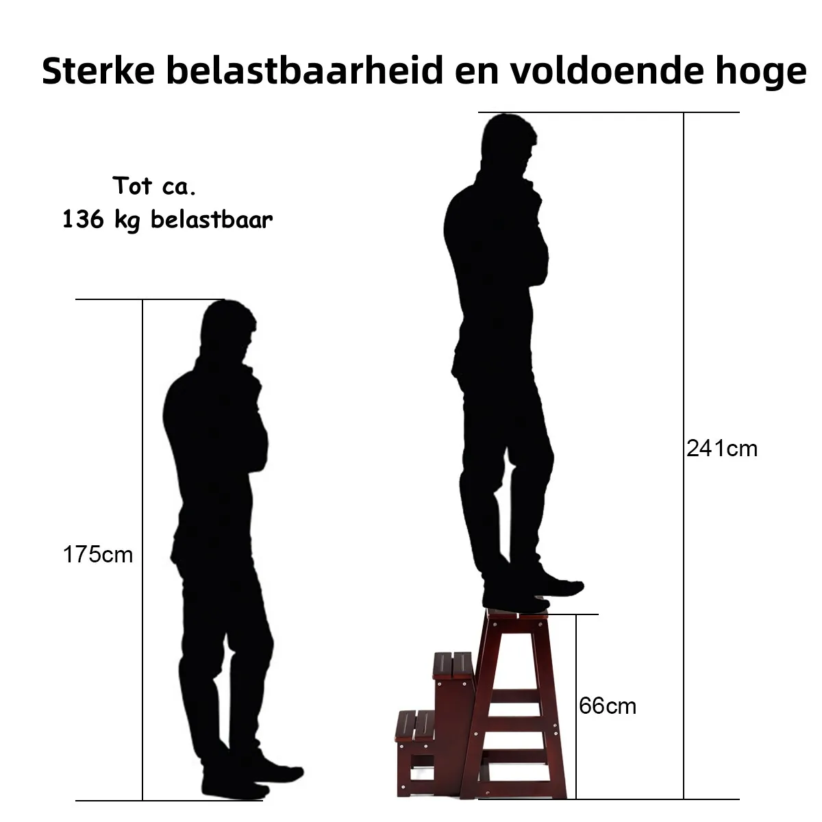 Veelzijdig gebruik – kruk, ladder (planken), kan worden verwisseld tussen de klep, handig en snel, neemt geen ruimte in beslag in huis.