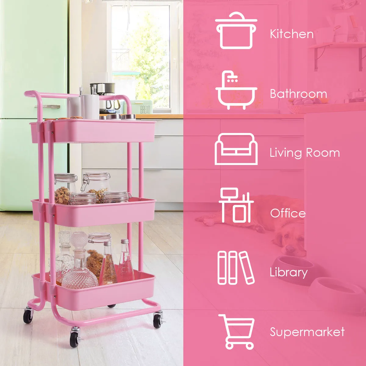 【Ruimtebesparende multifunctionele wagen】Deze metalen wagen heeft een eenvoudige stijl en is perfect voor gebruik in de keuken, badkamer, kantoor, wasplaats, winkel en buitenshuis. Bovendien verbetert het verticale ontwerp de ruimtebenutting, wat een goede opslagoplossing is voor mensen die in een kleine ruimte wonen.