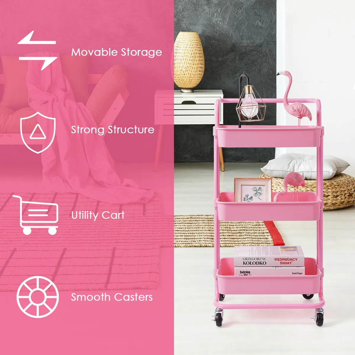 【Handige en zorgeloze wagen】Deze mobiele opbergwagen is eenvoudig te monteren met duidelijke instructies en benodigde hardware. Met een roestwerend oppervlak en een mand van plastic gaas, is deze wagen gemakkelijk schoon te maken met de zachte doek.