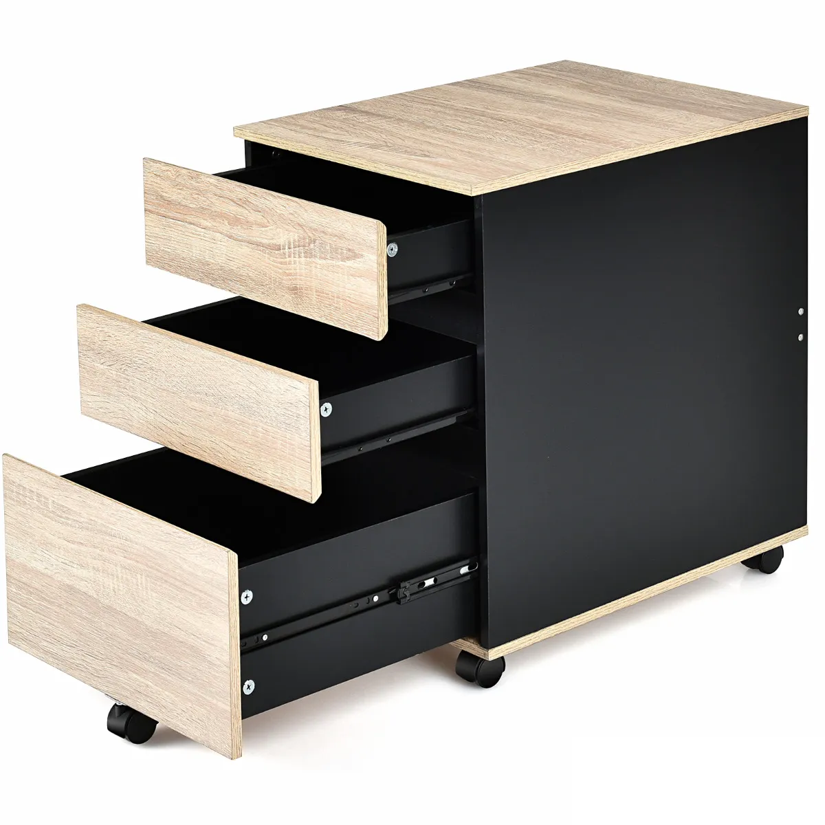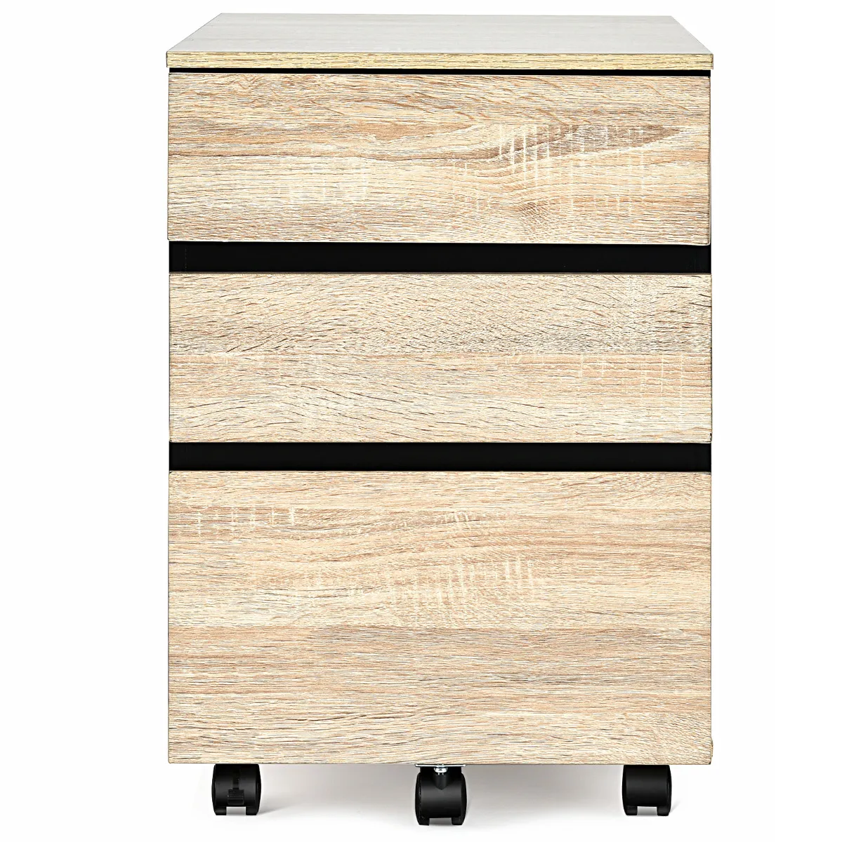 Gemaakt van duurzaam gefabriceerd hout, kan deze opbergkast voor een lange tijd worden gebruikt. 2 kleine laden en 1 grote onderste lade bieden voldoende opslagruimte, die zeer geschikt is voor het opbergen van uw bestanden, boeken, briefpapier, enz. Soepele ladegeleiders zorgen voor een gemakkelijke toegang tot de items. Deze kast is ook voorzien van vijf 360° zwenkwielen voor gemakkelijk verplaatsen. Vermeldenswaard zijn de 2 vergrendelbare voorwielen waarmee u de archiefkast op zijn plaats kunt vergrendelen en 1 hulpwiel voorkomt dat de kast omvalt. Door de combinatie van esthetiek en functionaliteit is deze verrijdbare archiefkast met 3 laden een ideale opbergoplossing voor uw kantoor, woonkamer of slaapkamer!