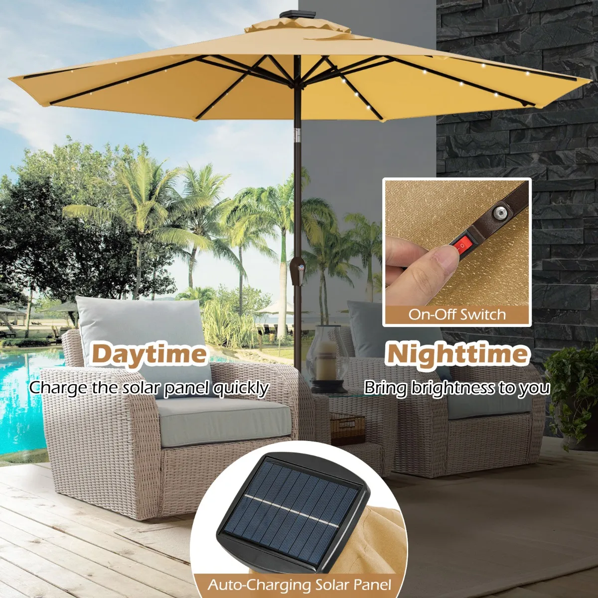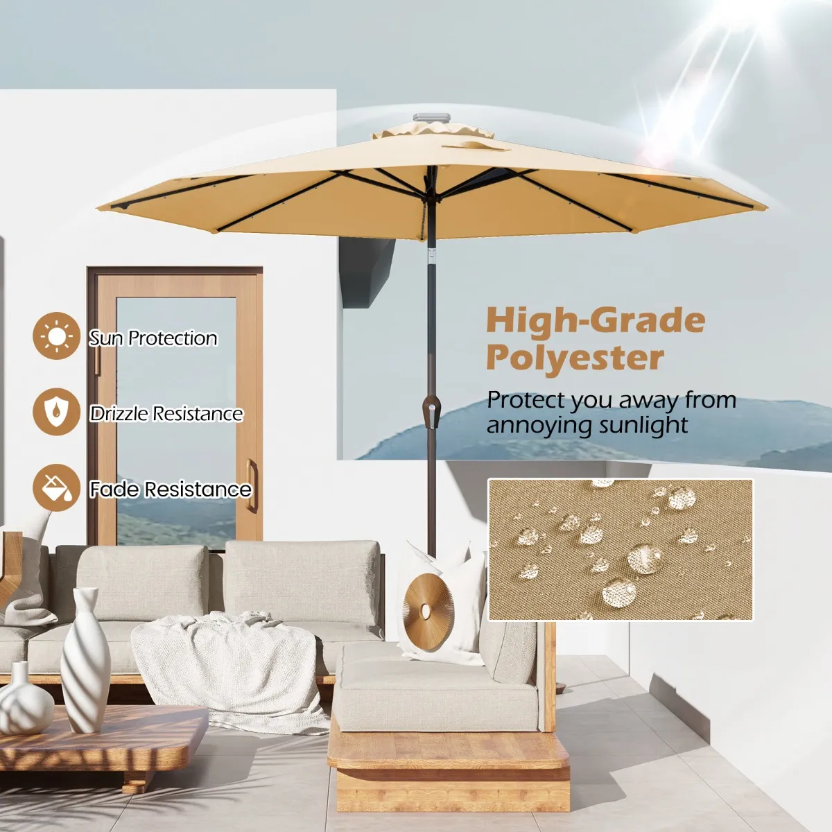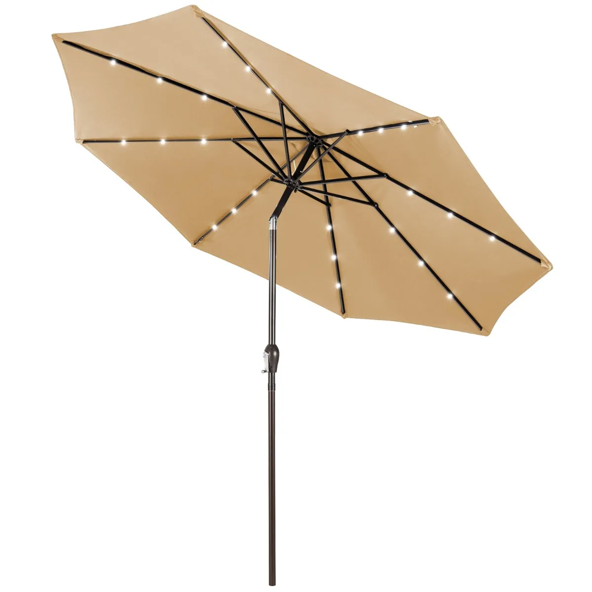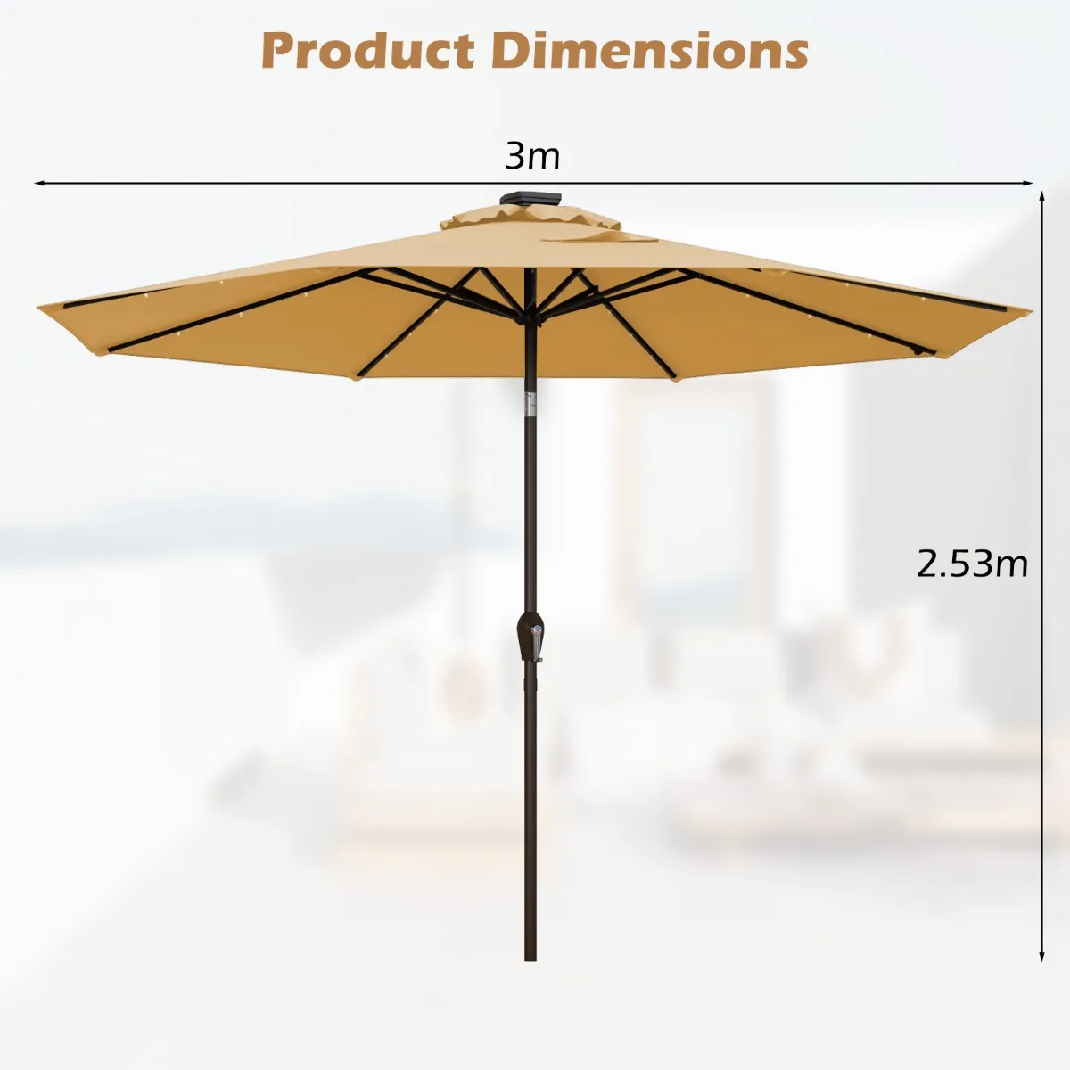 【Energiebesparing met zonne-energieontwerp】Uitgerust met het zonnepaneel aan de bovenkant van de paal, maakt deze parasol gebruik van zonne-energie in plaats van elektrische energie om de stroombehoefte van LED-lampen te ondersteunen, die schoon en milieuvriendelijk is.