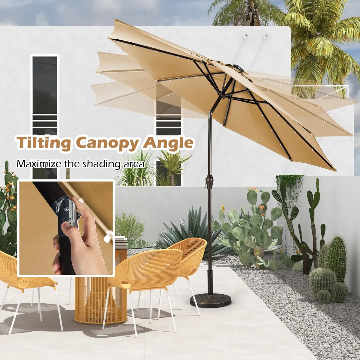 Ontworpen met een moderne uitstraling, zal het een perfecte aanvulling zijn, of het nu voor familie of voor commerciële doeleinden is.Het kan in alle weersomstandigheden worden gebruikt met de grote parasolhoes van 3M om zowel UV als regen te weerstaan. Omdat het kantelt, is er geen ongemak bij de verlichting. In combinatie met het zwengelliftsysteemzal het veel gemakkelijker te gebruiken zijn. Het bovenste zonnepaneel slaat overdag energie op zodat je het ’s nachts kunt gebruiken. Met de zachte LED-vlam zorgt de paraplu voor een romantische sfeer om een geweldige nacht door te brengen.