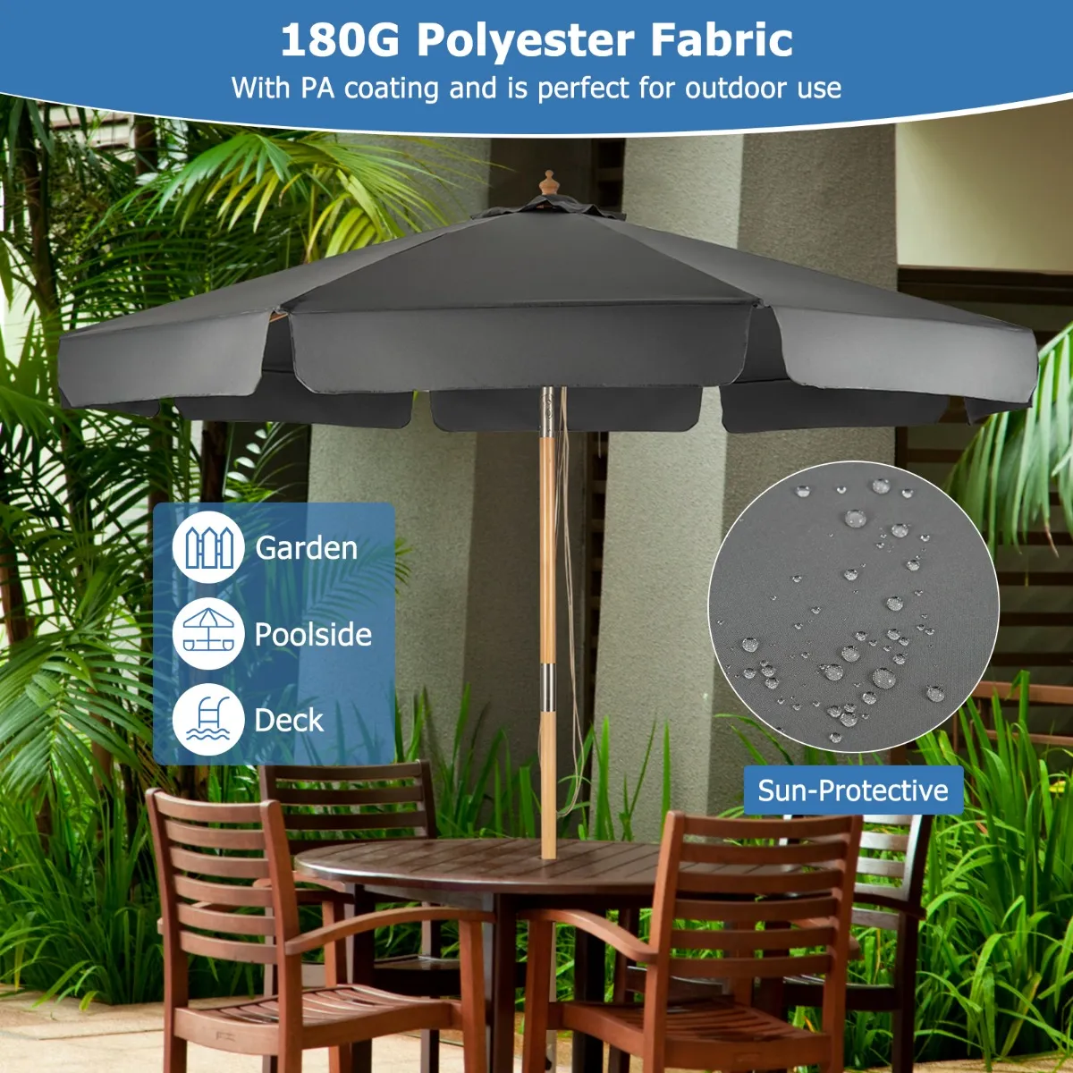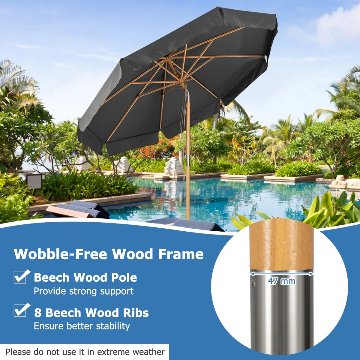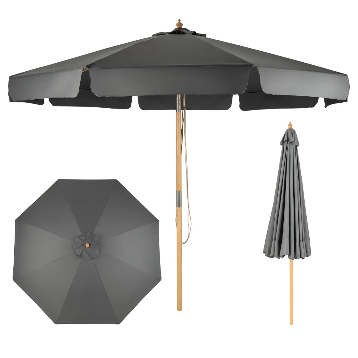 Stevige beukenhouten constructie: De stevige paal met een diameter van 47 mm en de 8 beukenhouten ribben zorgen voor uitstekende stabiliteit. Niet geschikt voor extreme weersomstandigheden. Â