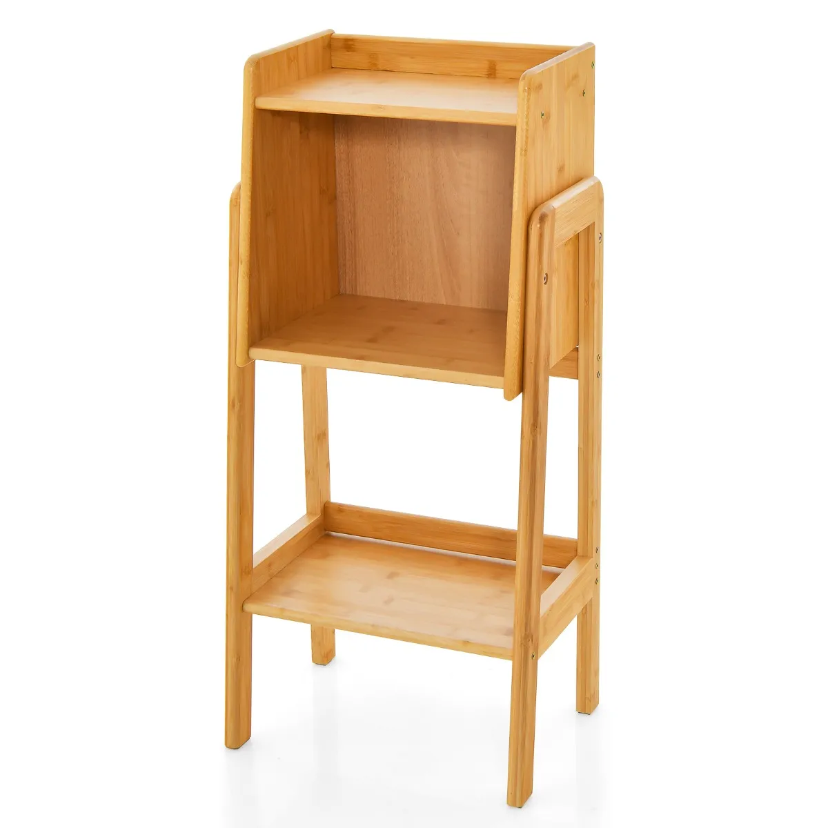 Onze eersteklas boekenkast van natuurlijk bamboe is gemaakt met een stevig A-frame dat superieure stabiliteit garandeert, waardoor het de perfecte keuze is voor iedereen die op zoek is naar een betrouwbare opbergoplossing. Met meerdere niveaus biedt het voldoende ruimte om je boeken, planten, decoraties en meer te organiseren en uit te stallen. De elegante afwerking laat ook de schoonheid van natuurlijk bamboe zien en voegt een vleugje verfijning toe aan je woonkamer, speelkamer, slaapkamer of keuken.