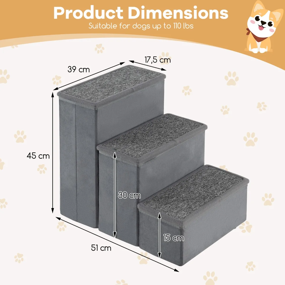 【Innovatieve opbergoplossing】: De hondentrap combineert 3 opbergvakken, zodat huisdiereigenaren benodigdheden zoals traktaties, speelgoed en dierenkleding kunnen bewaren. De 3 compartimenten zijn aan elkaar bevestigd met klittenband, wat veelzijdigheid biedt omdat ze ook als aparte opslageenheden kunnen fungeren.
